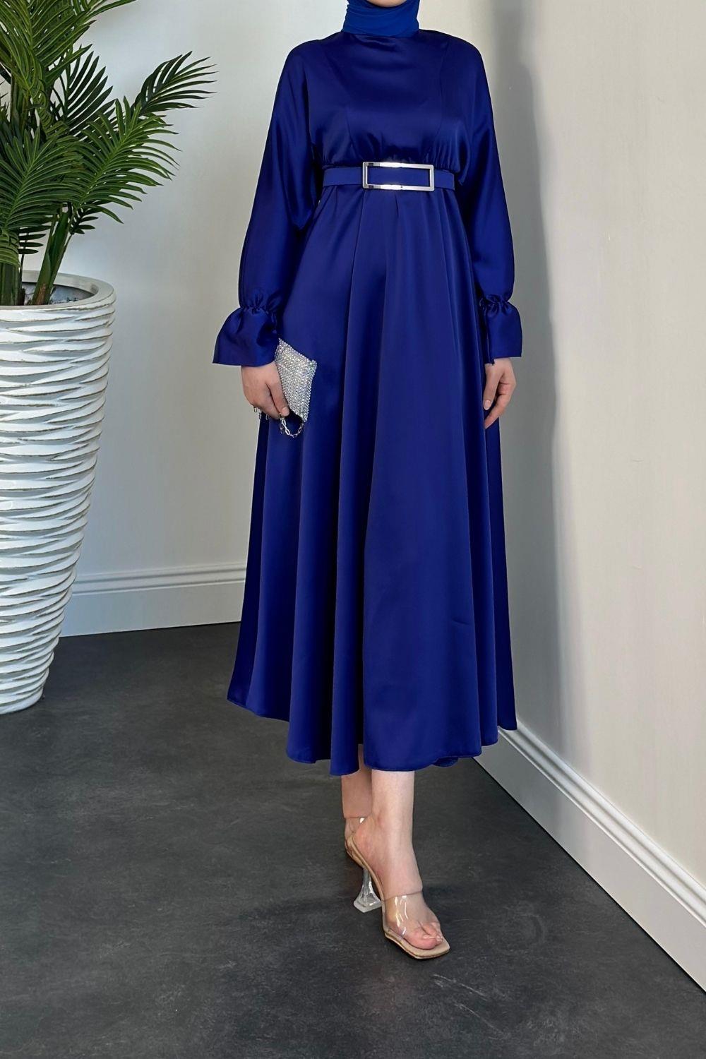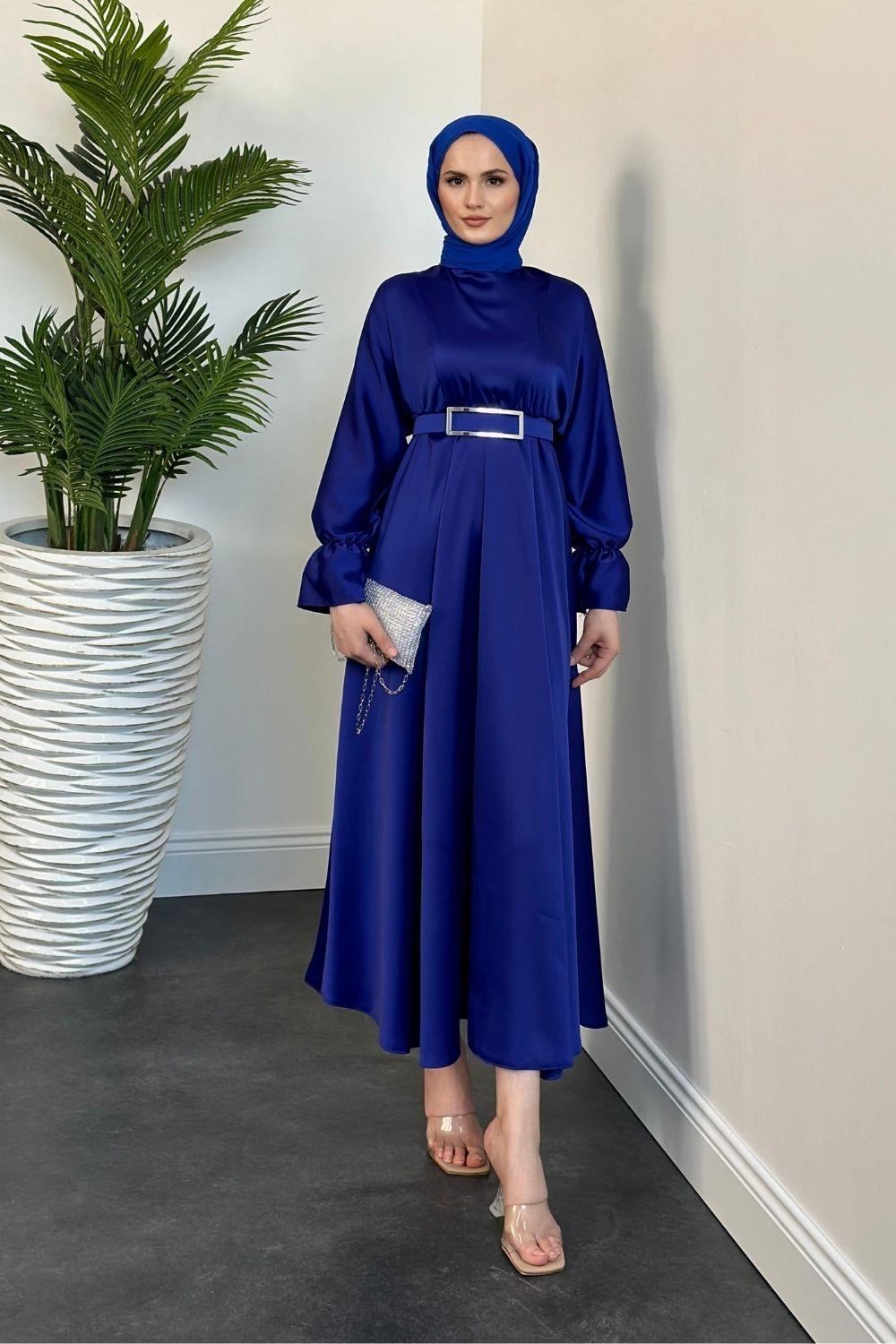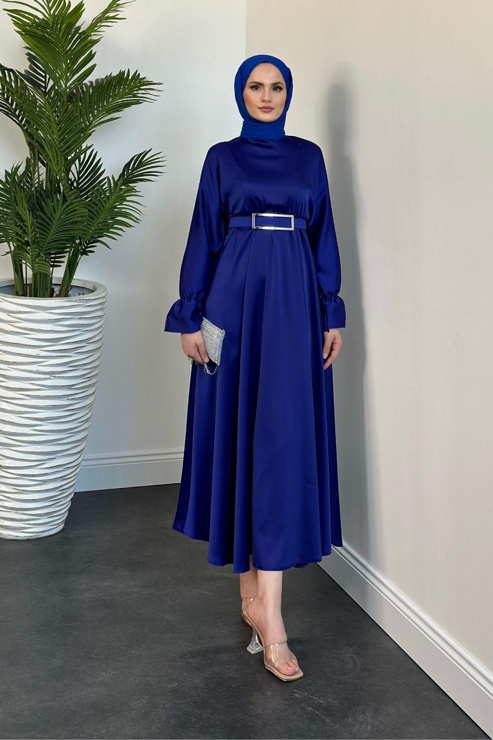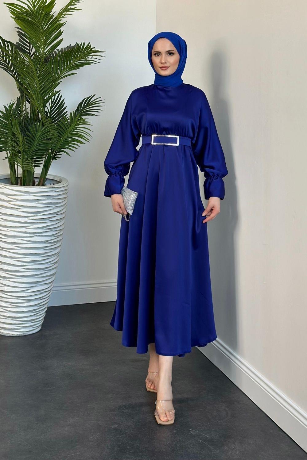 Della Kemerli Saten Elbise Saks