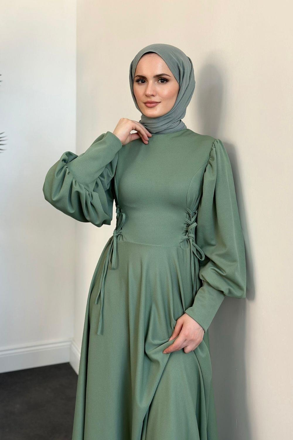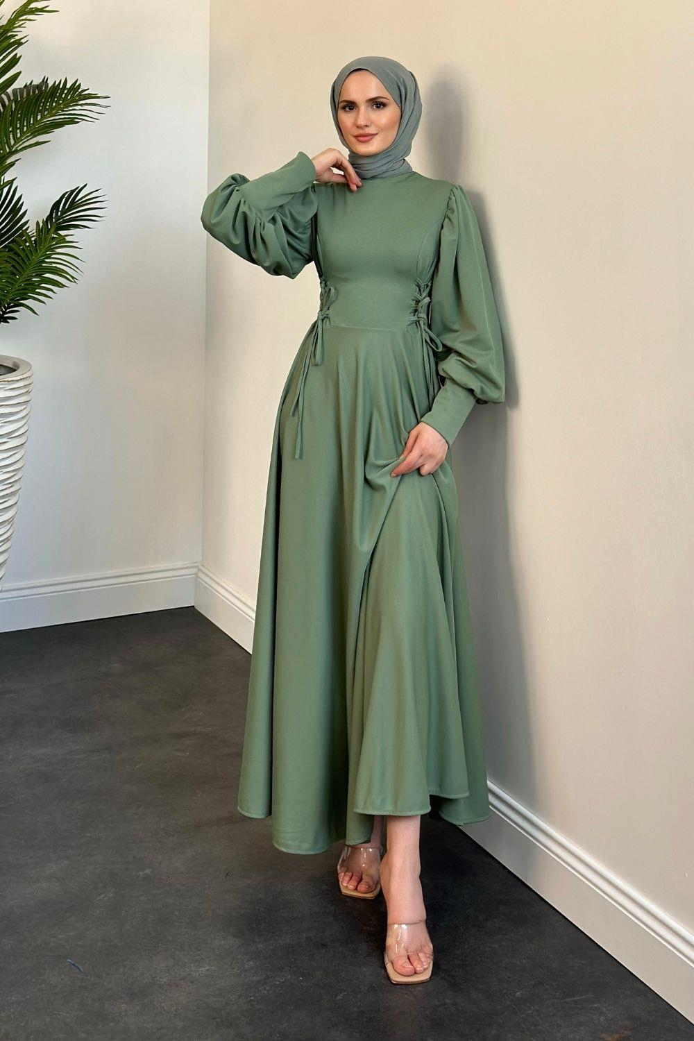 Vento Yanları Büzgülü Çan Elbise Mint