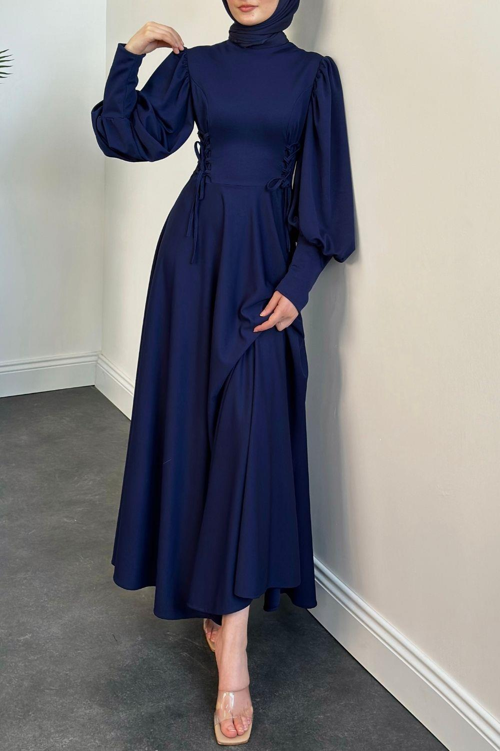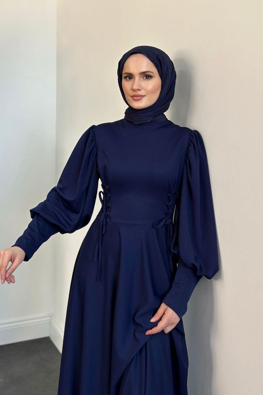 Vento Yanları Büzgülü Çan Elbise Lacivert