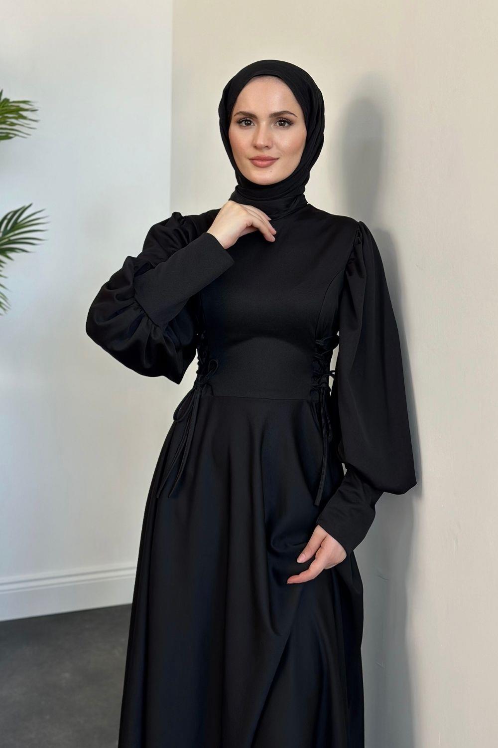 Vento Yanları Büzgülü Çan Elbise Siyah