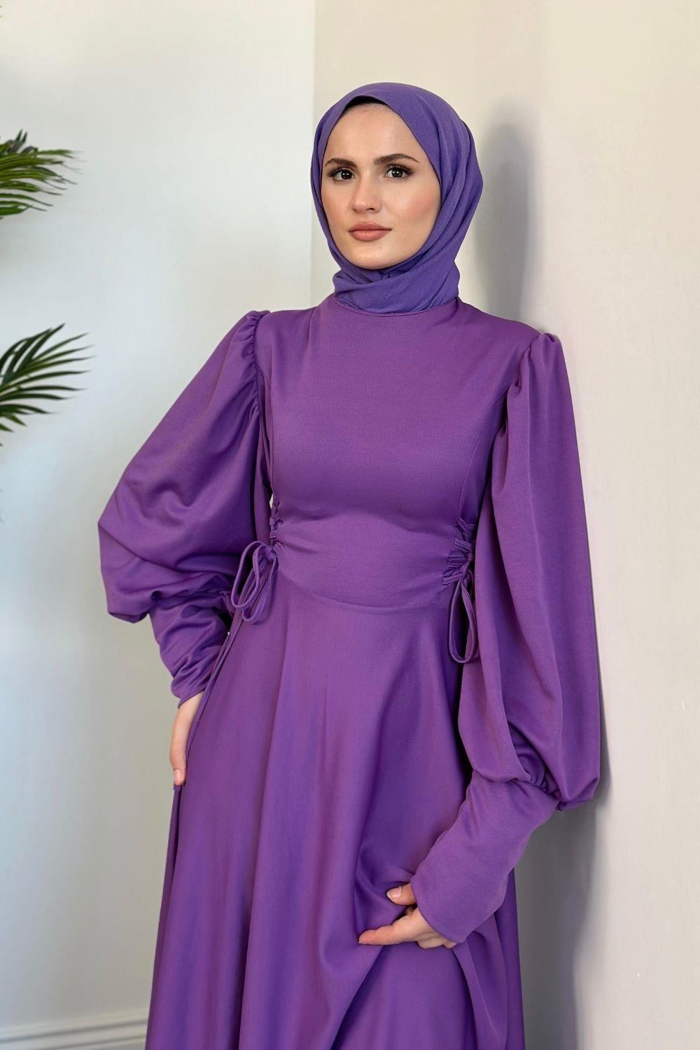 Vento Yanları Büzgülü Çan Elbise Lila
