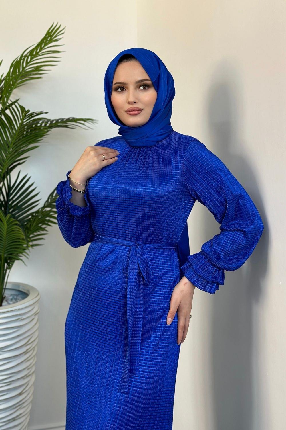 Daria Astarlı Kolları Fırfır Elbise Saks