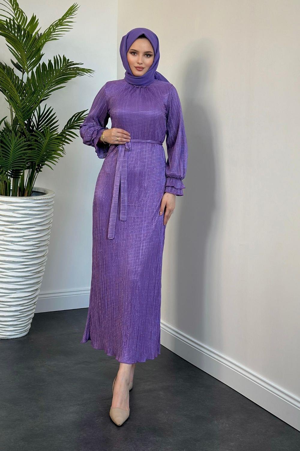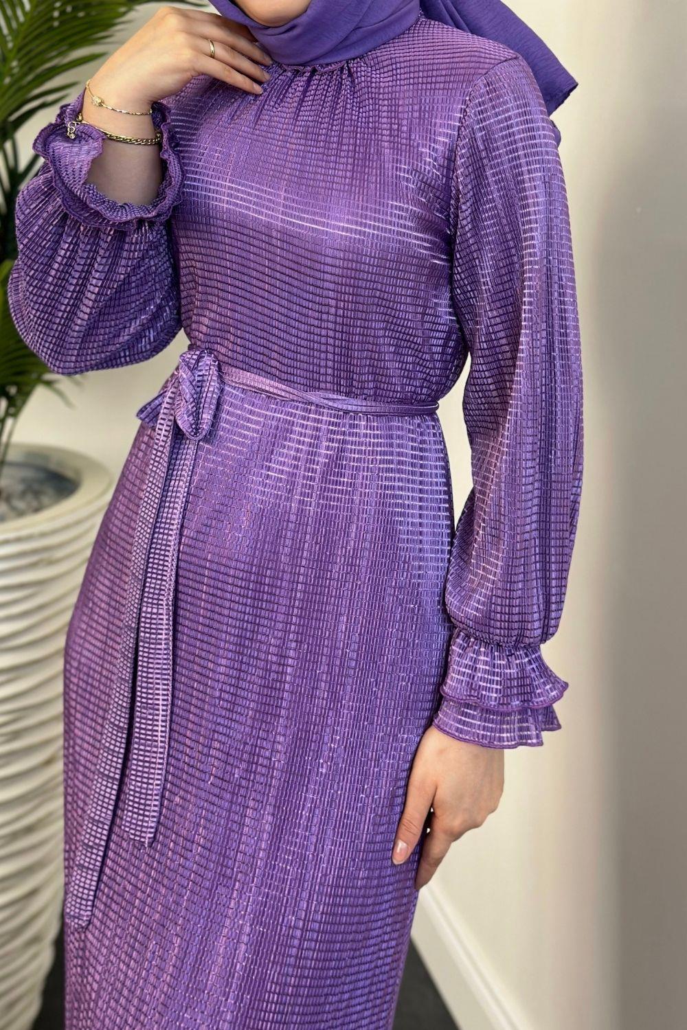 Daria Astarlı Kolları Fırfır Elbise Lila
