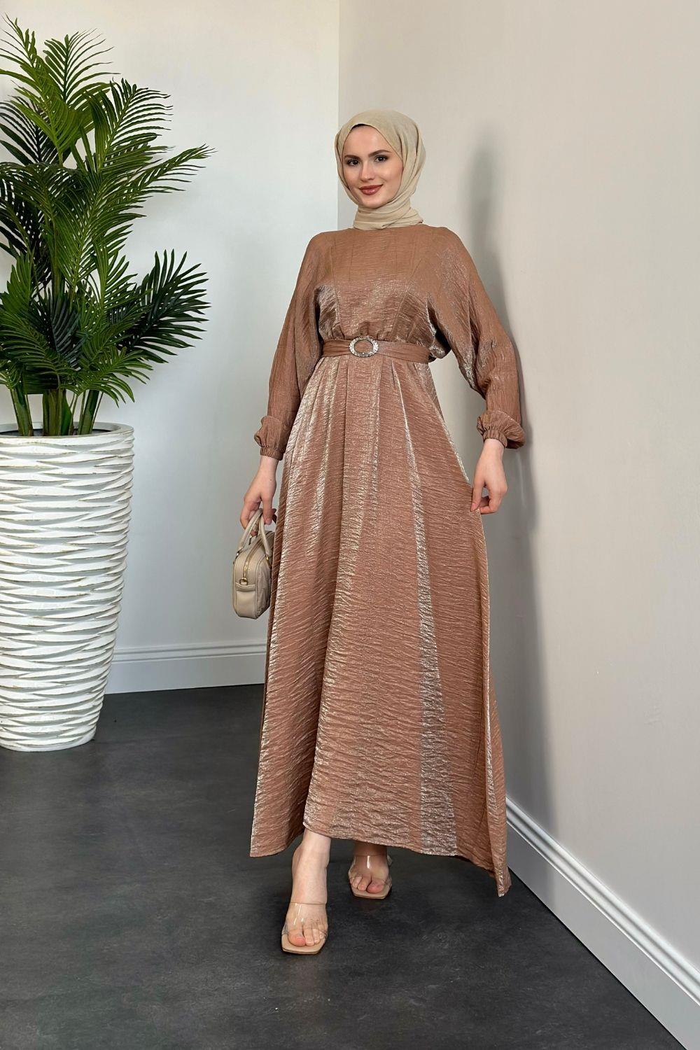 Luuz Jakar Kemerli Elbise Kahverengi
