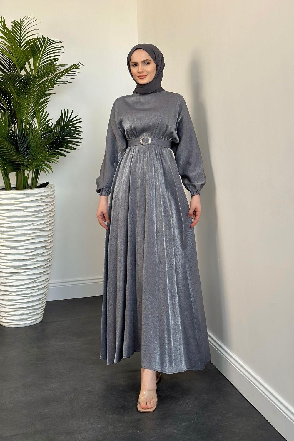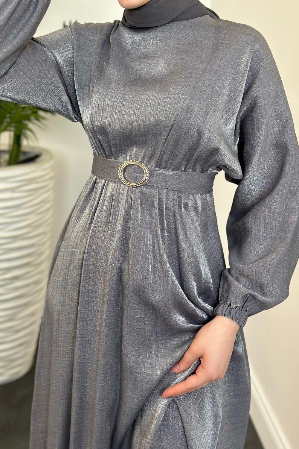 Luuz Jakar Kemerli Elbise Füme