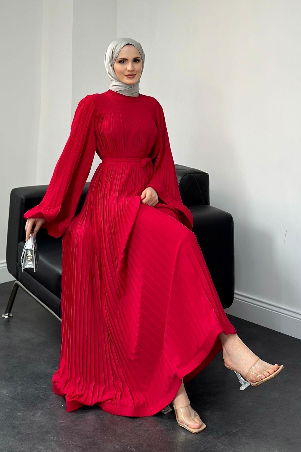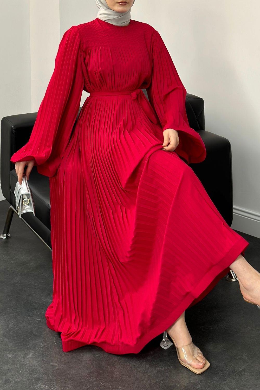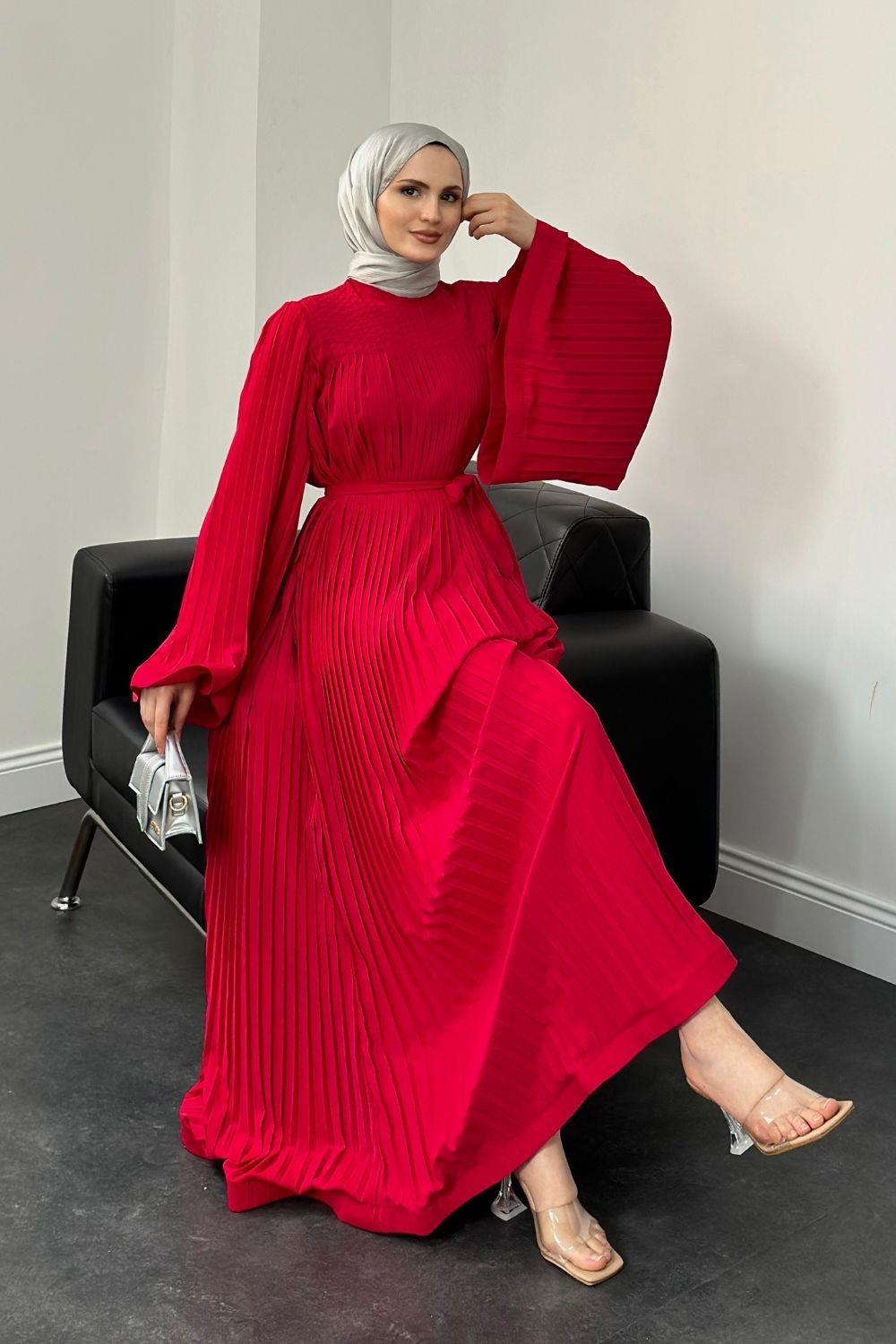 Felix Pliseli Elbise Kırmızı