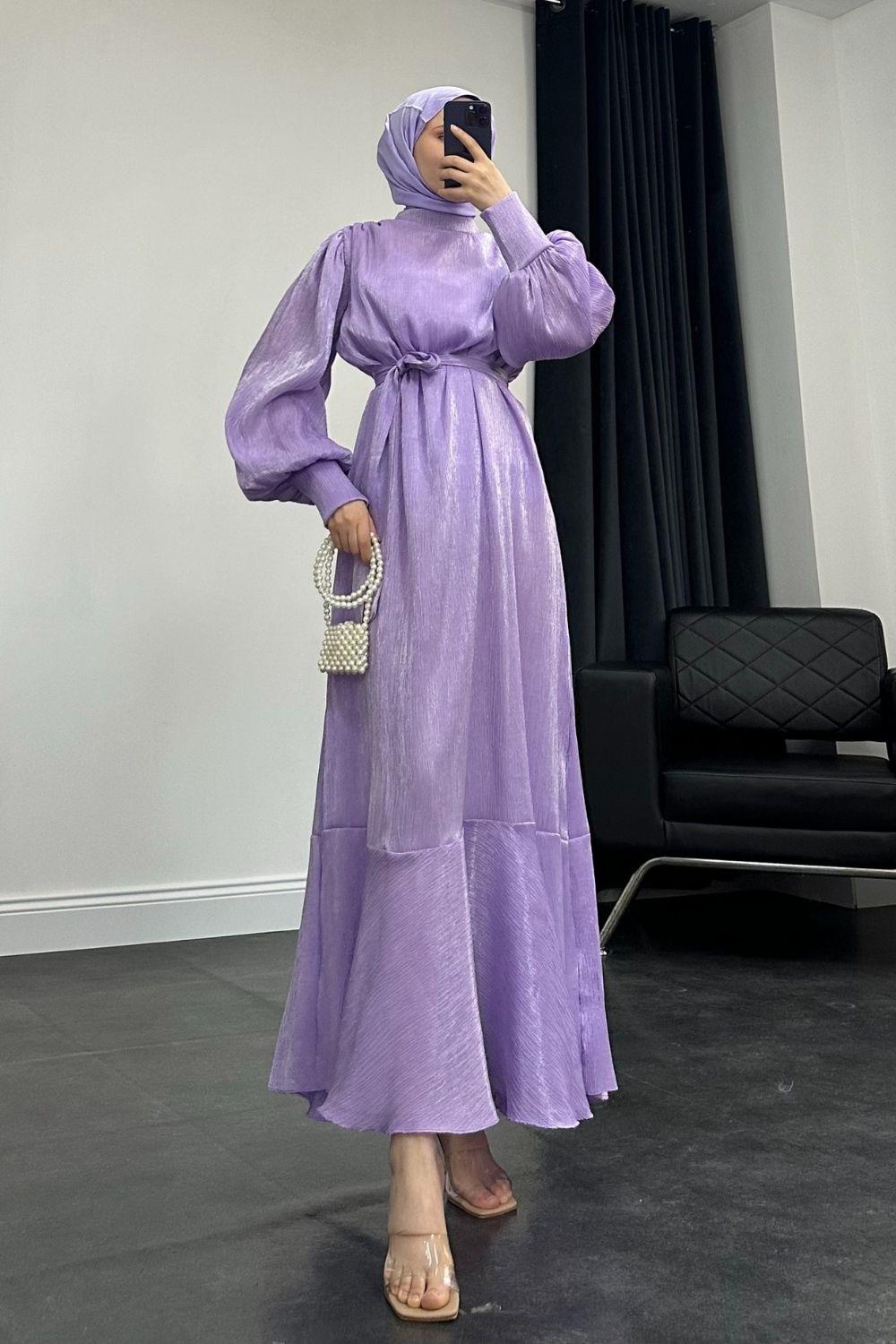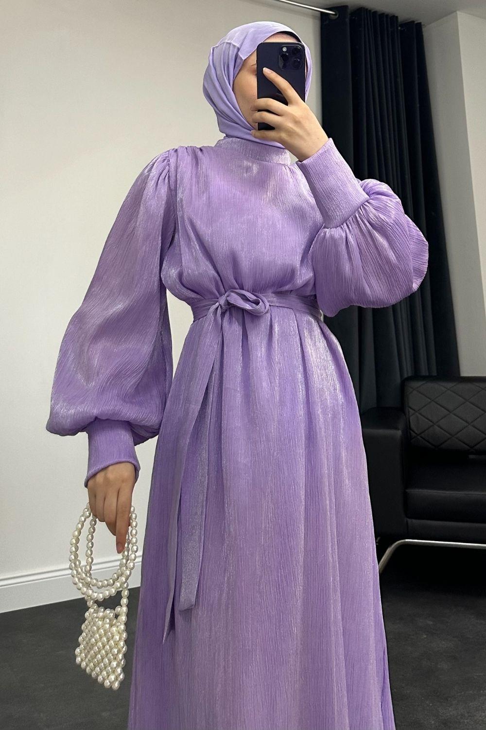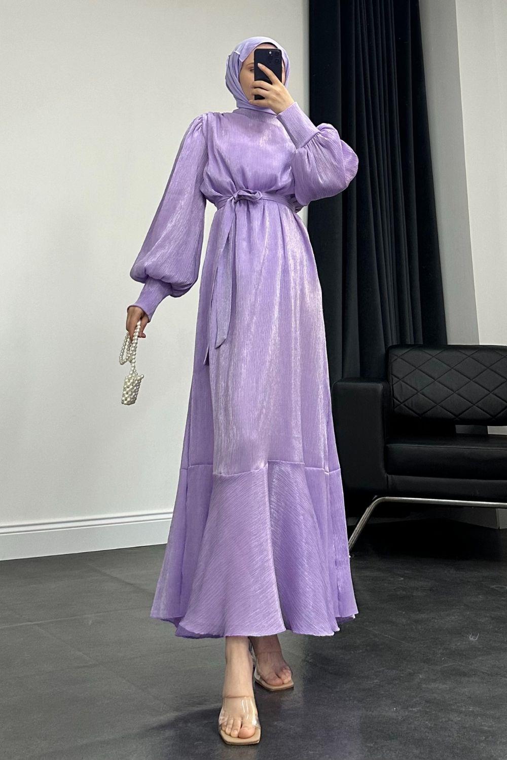 Olina Balon Kol Elbise Bebe Lila