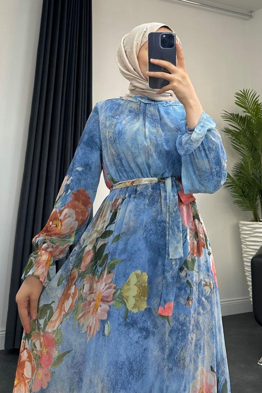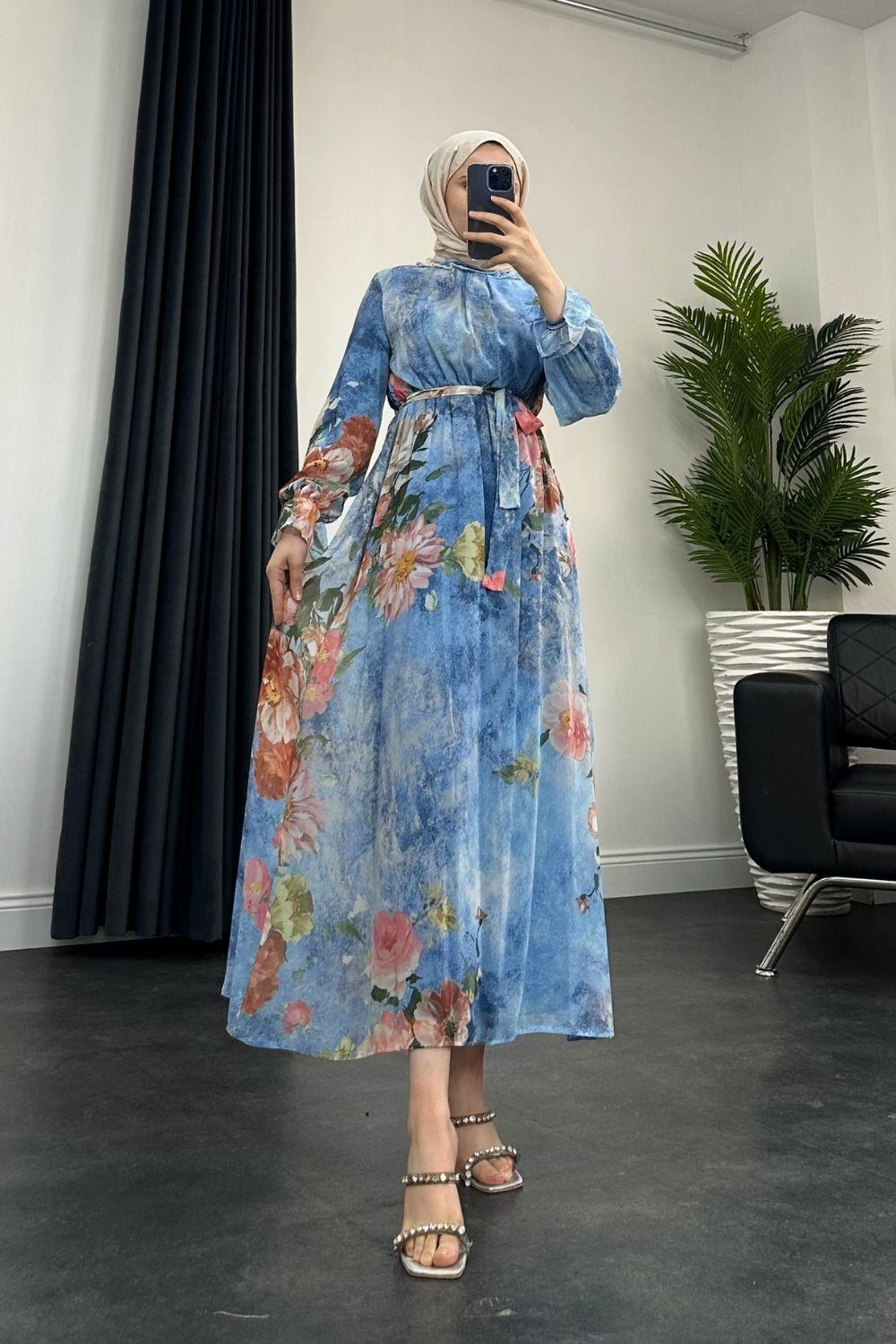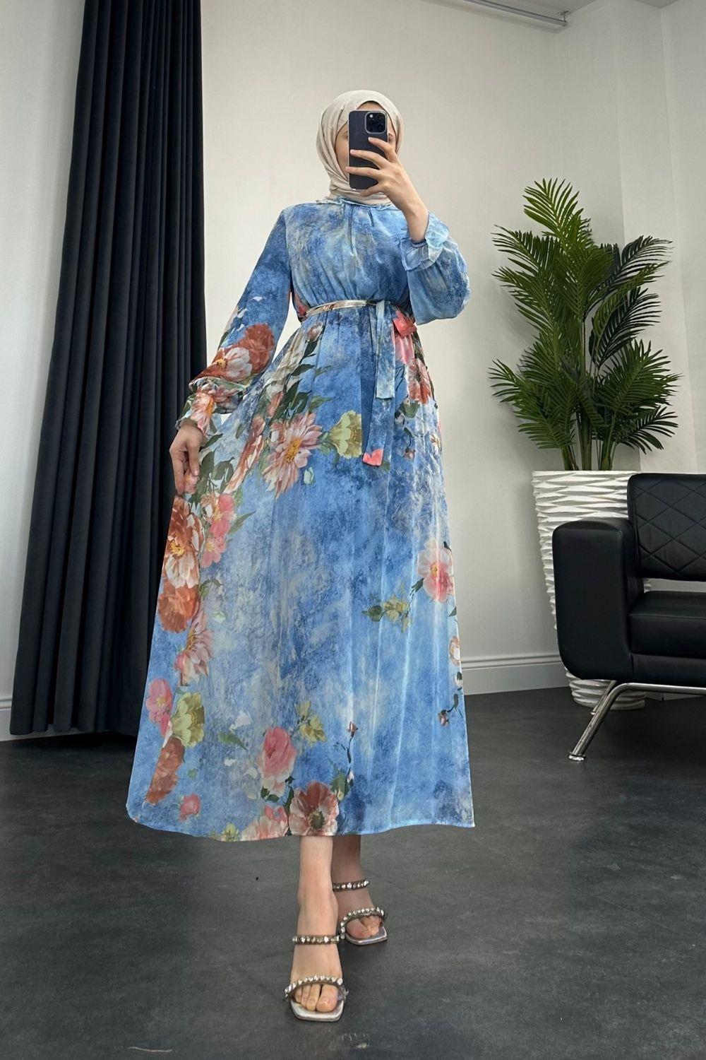 Nadya Astarlı Şifon Elbise Mavi