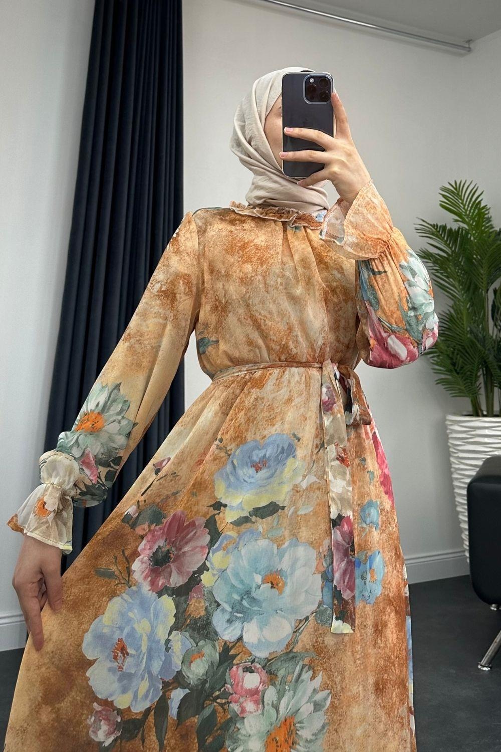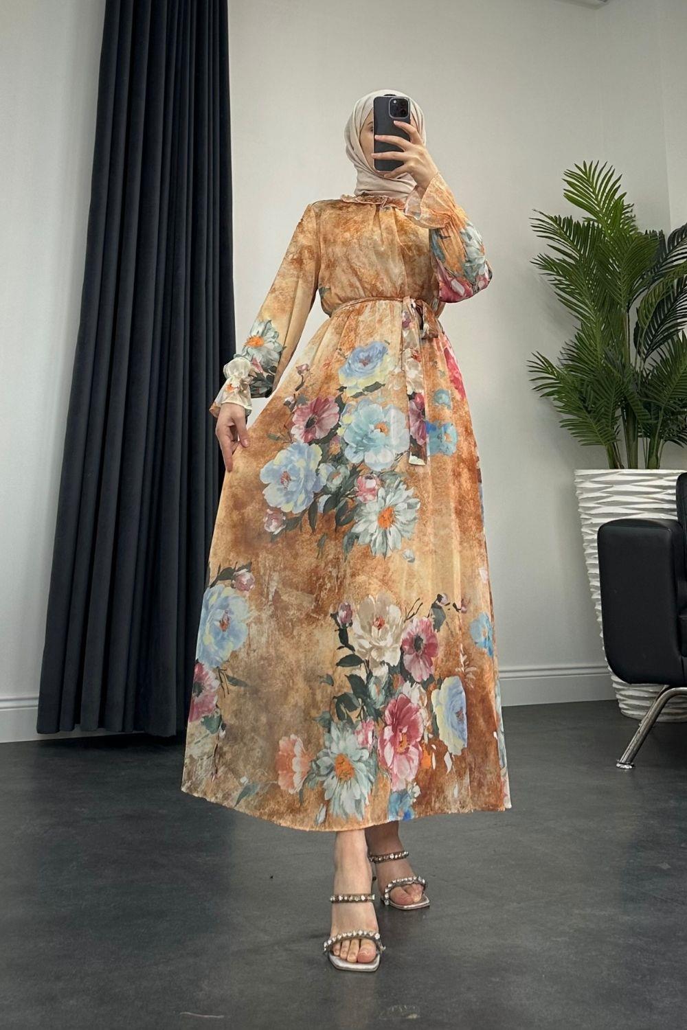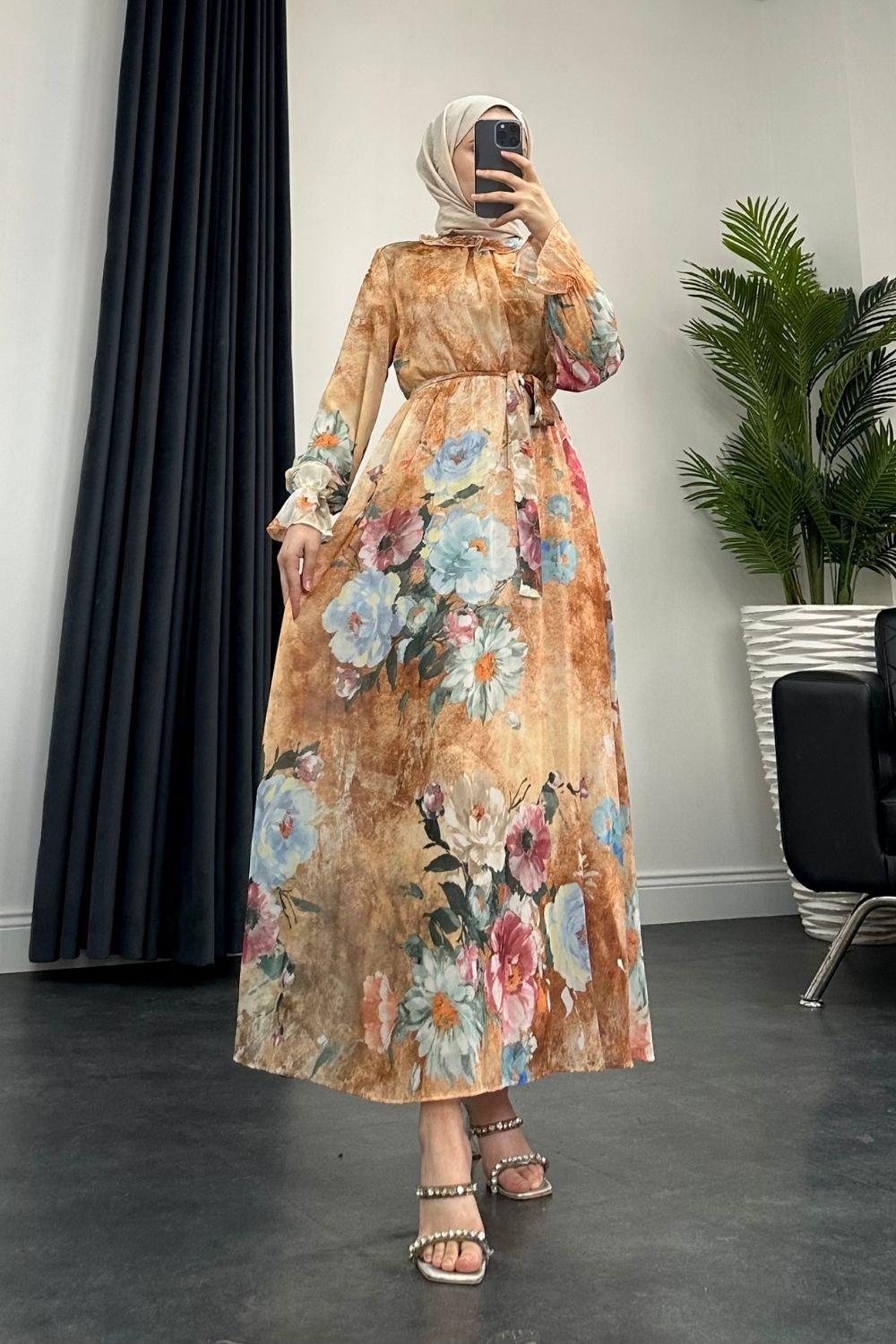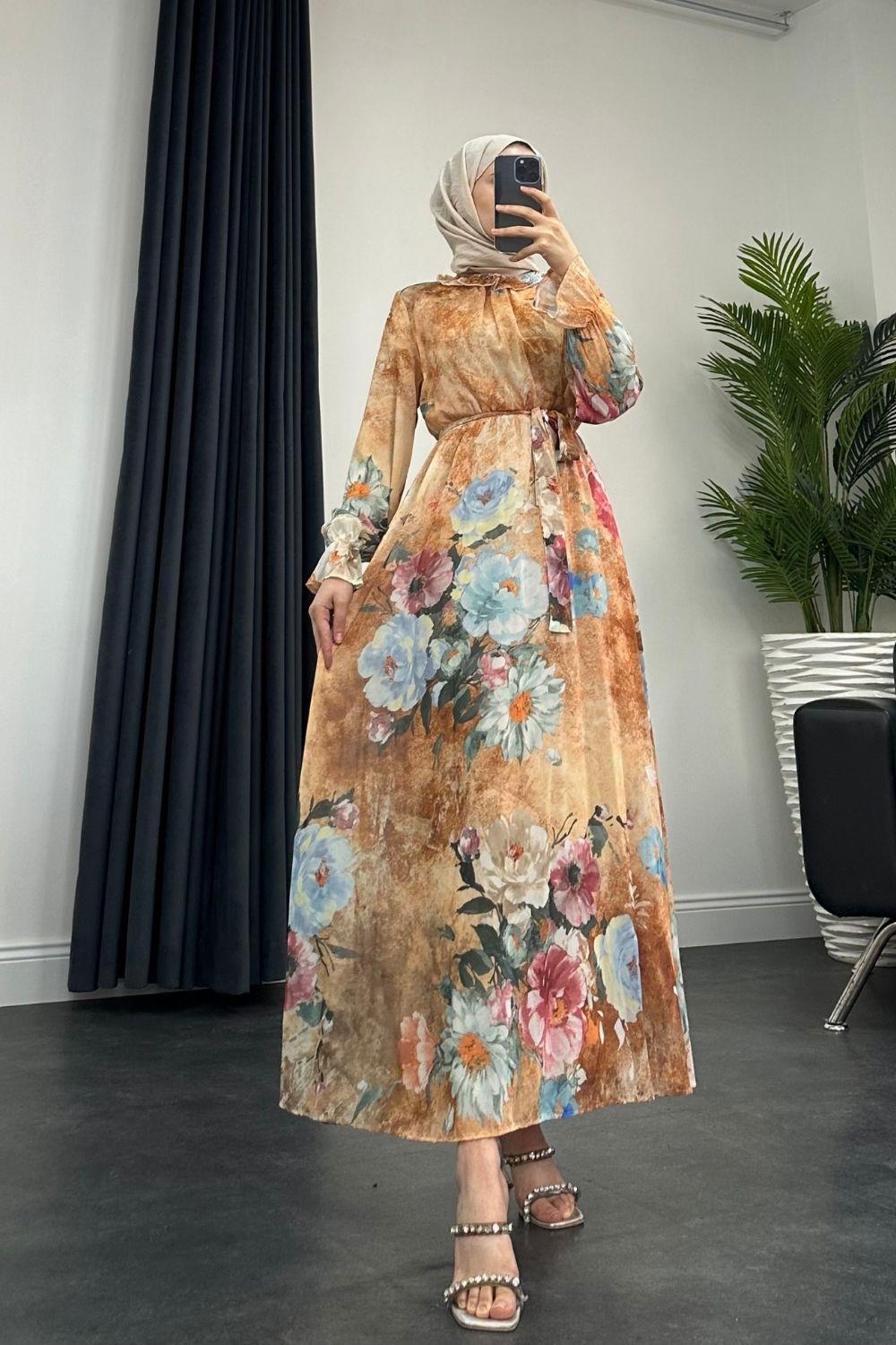 Nadya Astarlı Şifon Elbise Somon