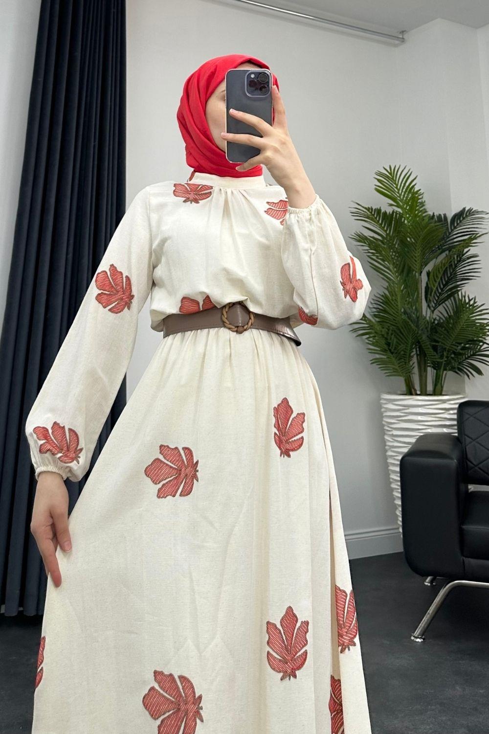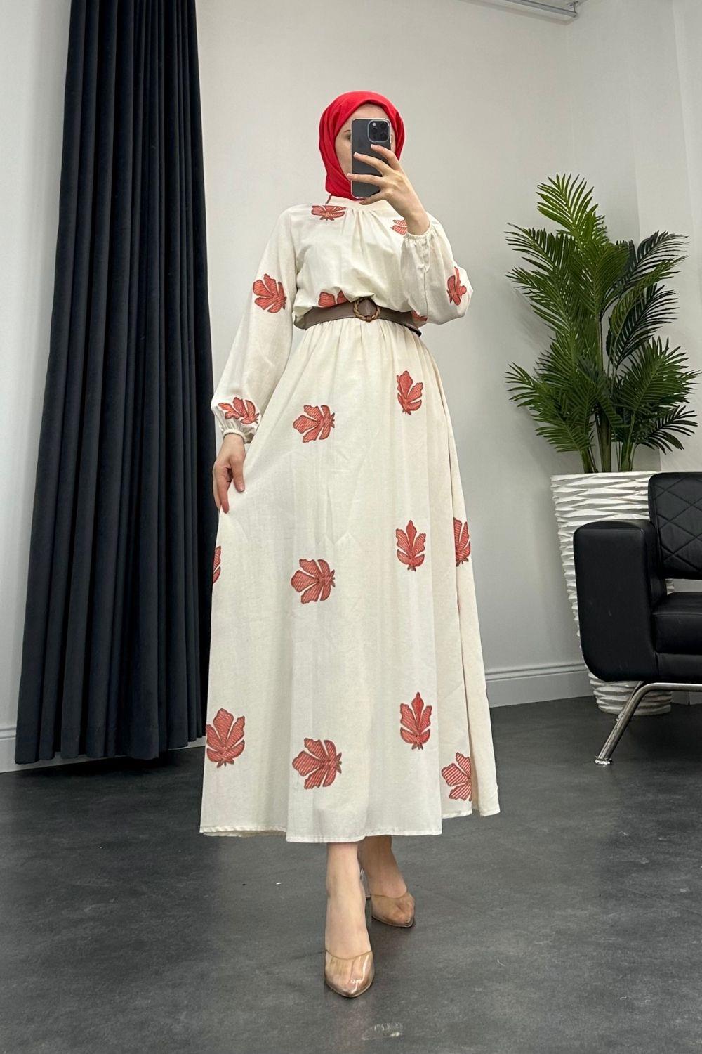 Carolie Kemerli Coton Elbise Kırmızı