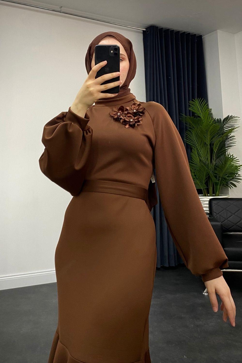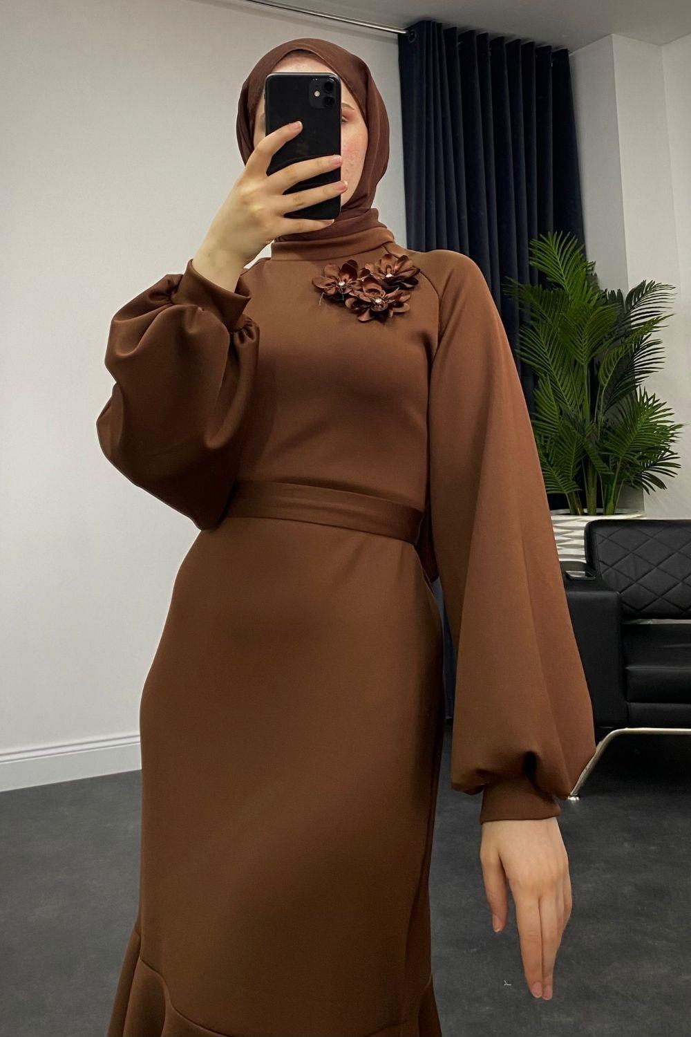 Rosalie Scuba Elbise Kahverengi