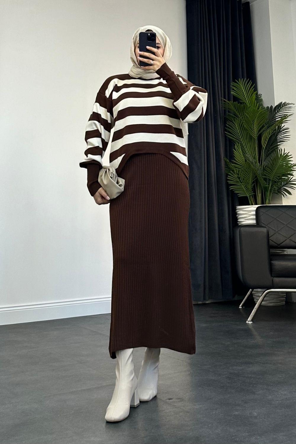 Buse Triko Elbise Kahverengi