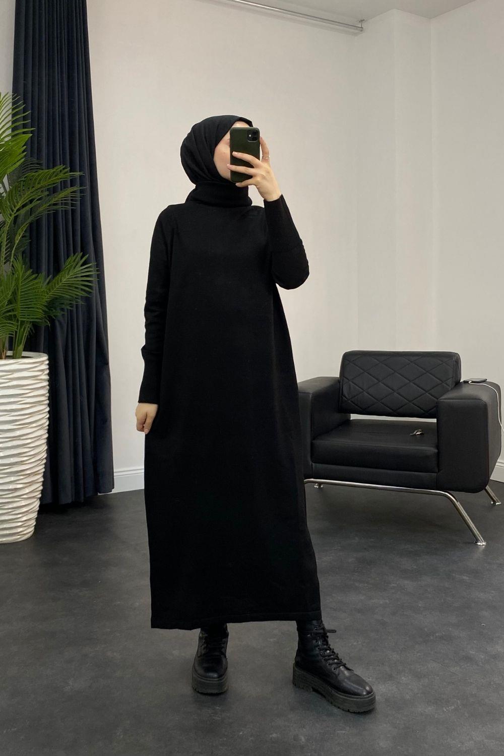 Boğazlı Triko Elbise Siyah