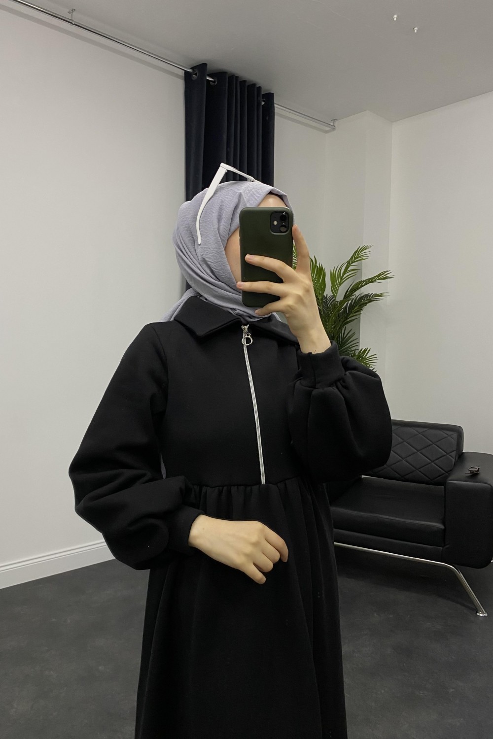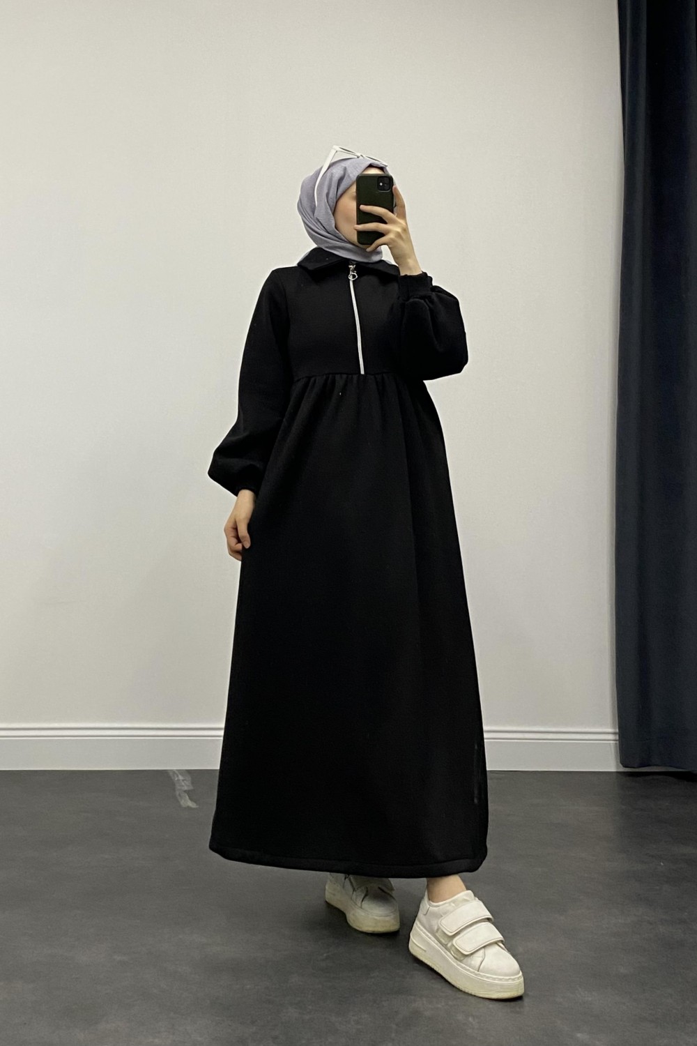 Vereniko Fermuarlı Sweat Elbise Siyah