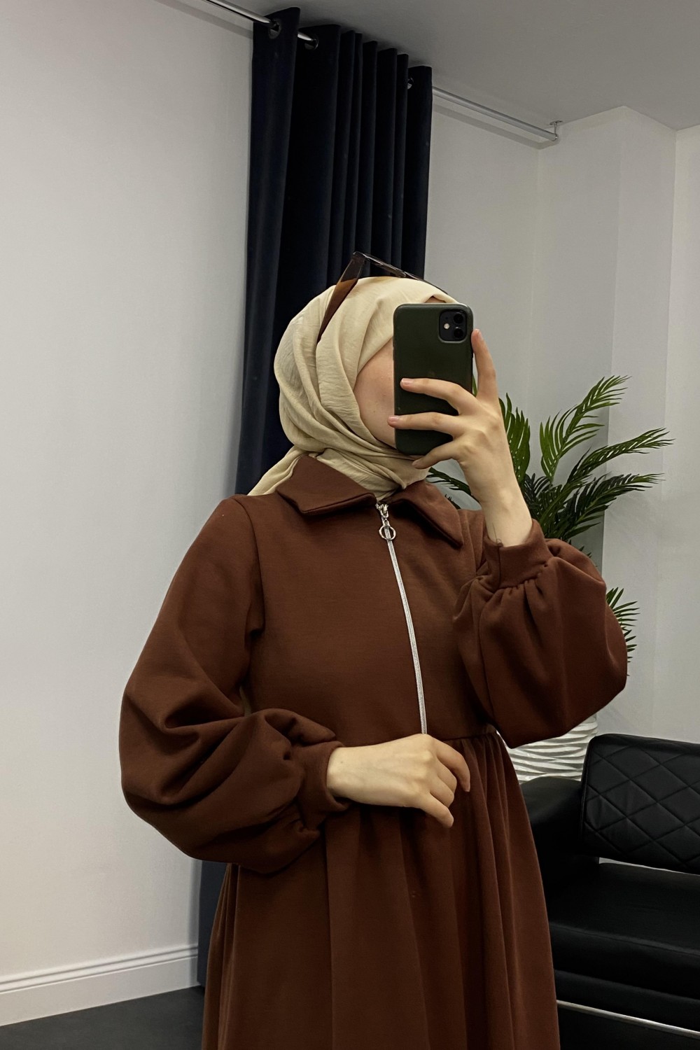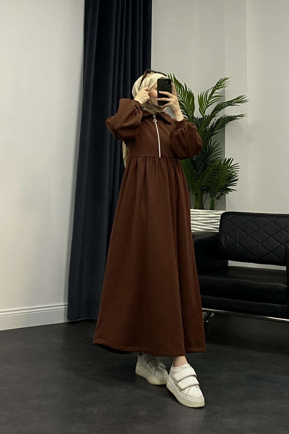 Vereniko Fermuarlı Sweat Elbise Kahverengi