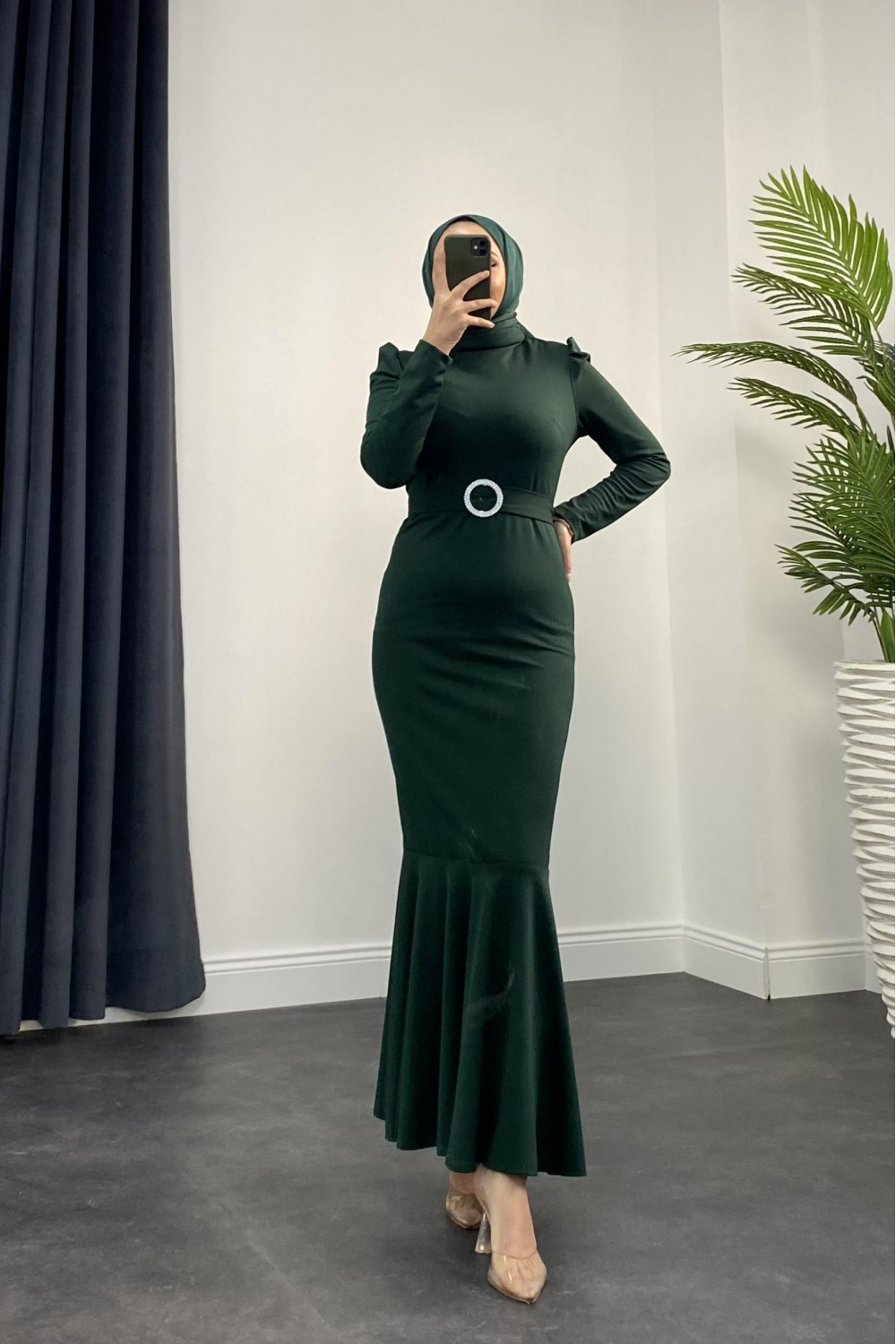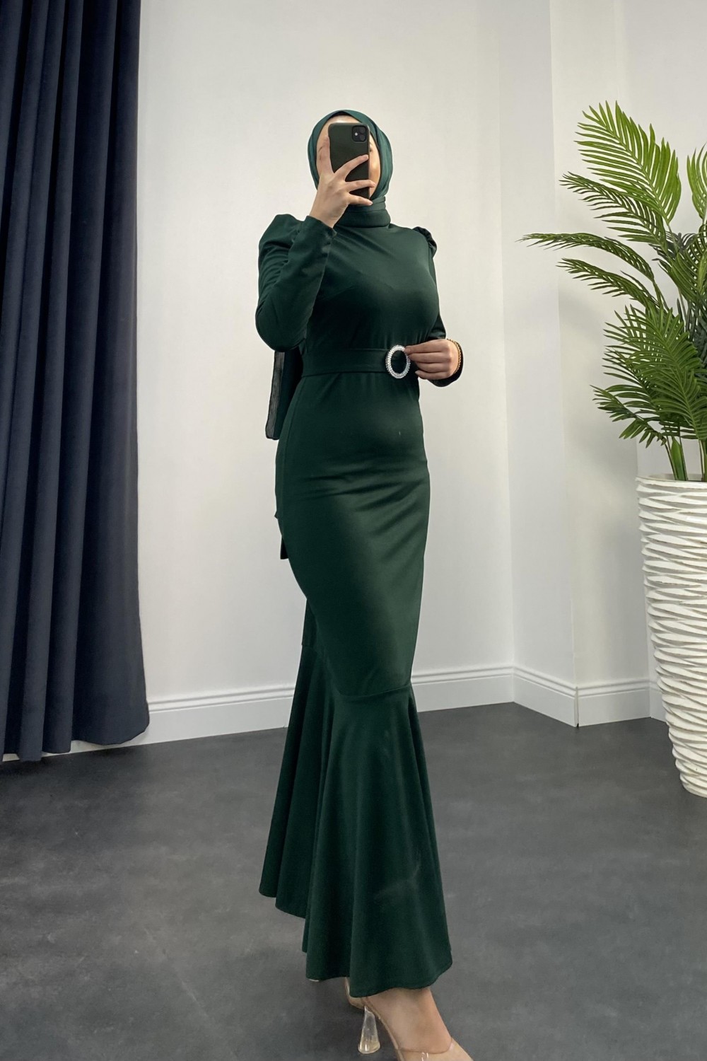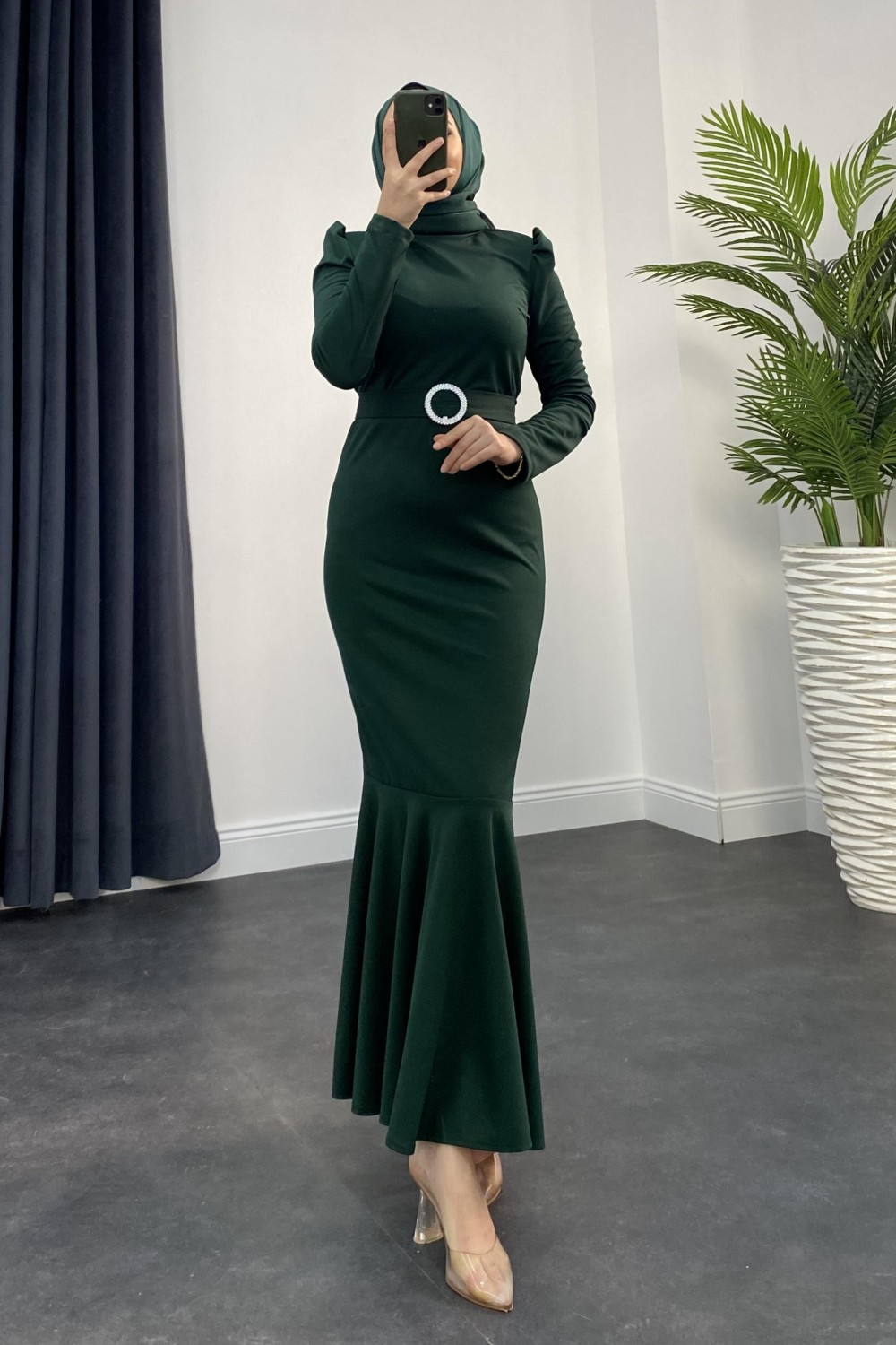 Hazel Altı Volan Elbise Zümrüt