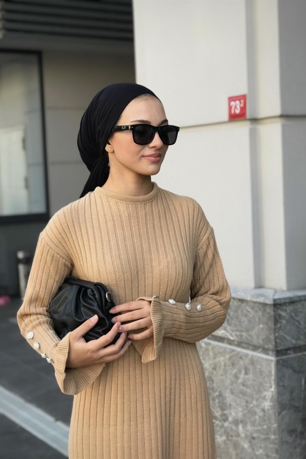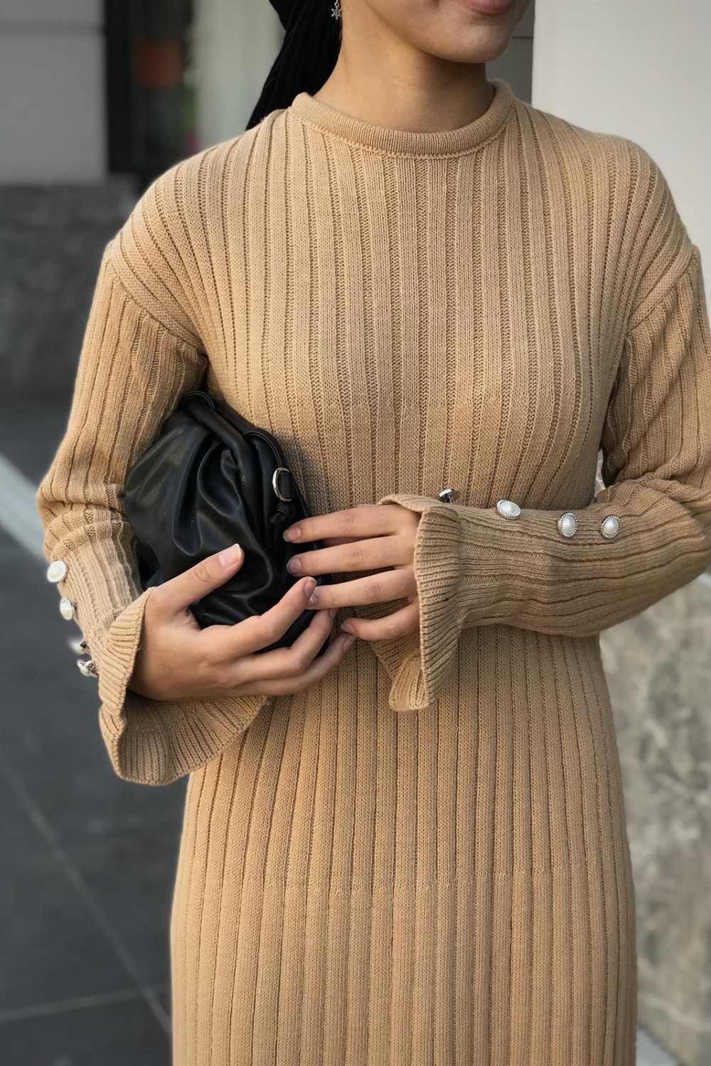 Alice Kolu Düğmeli Triko Elbise SütlüKahve