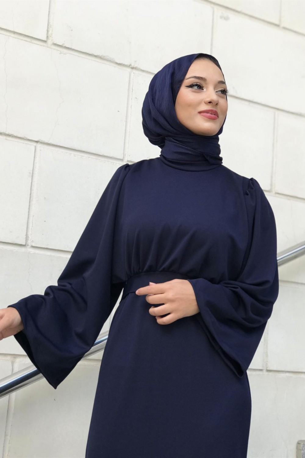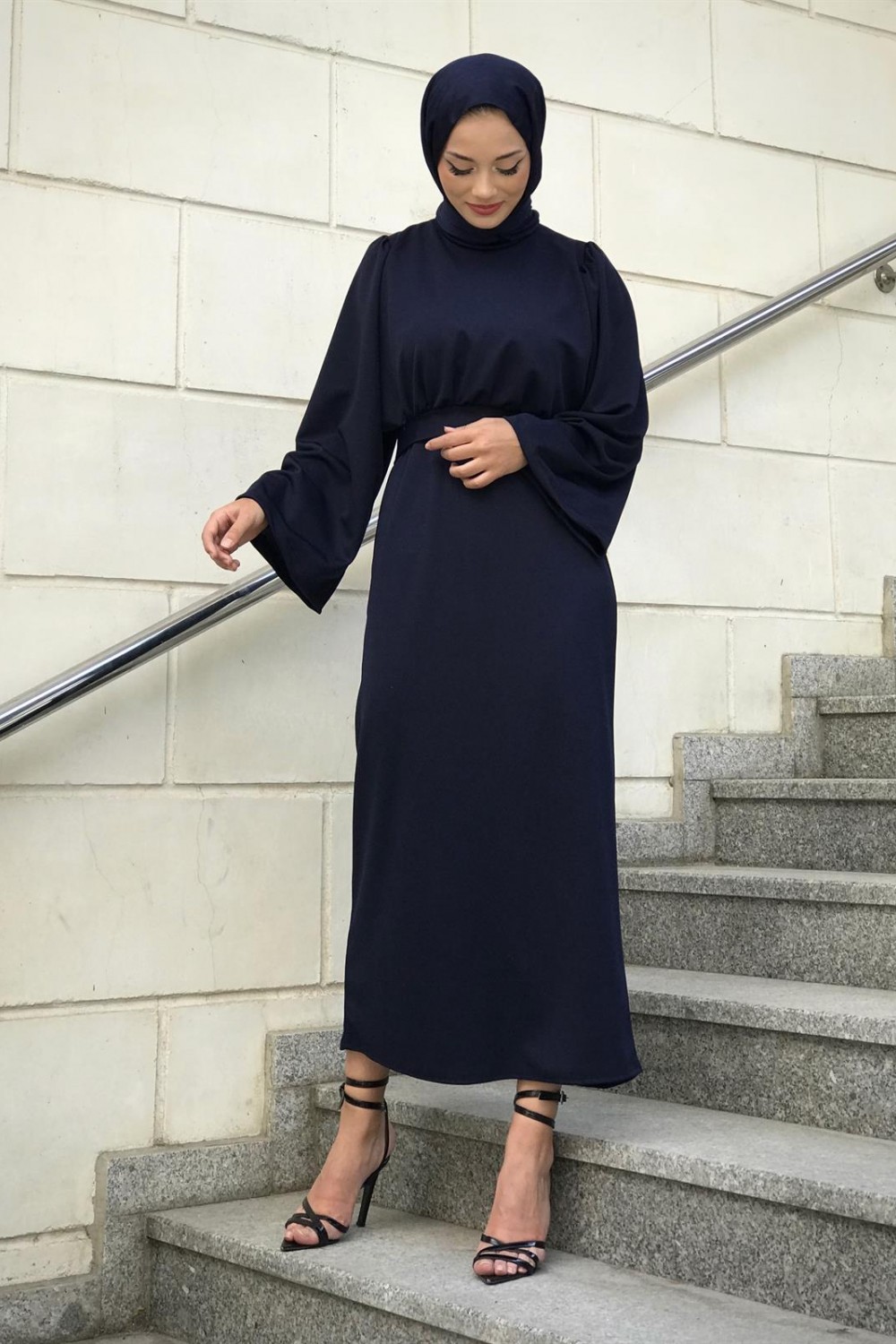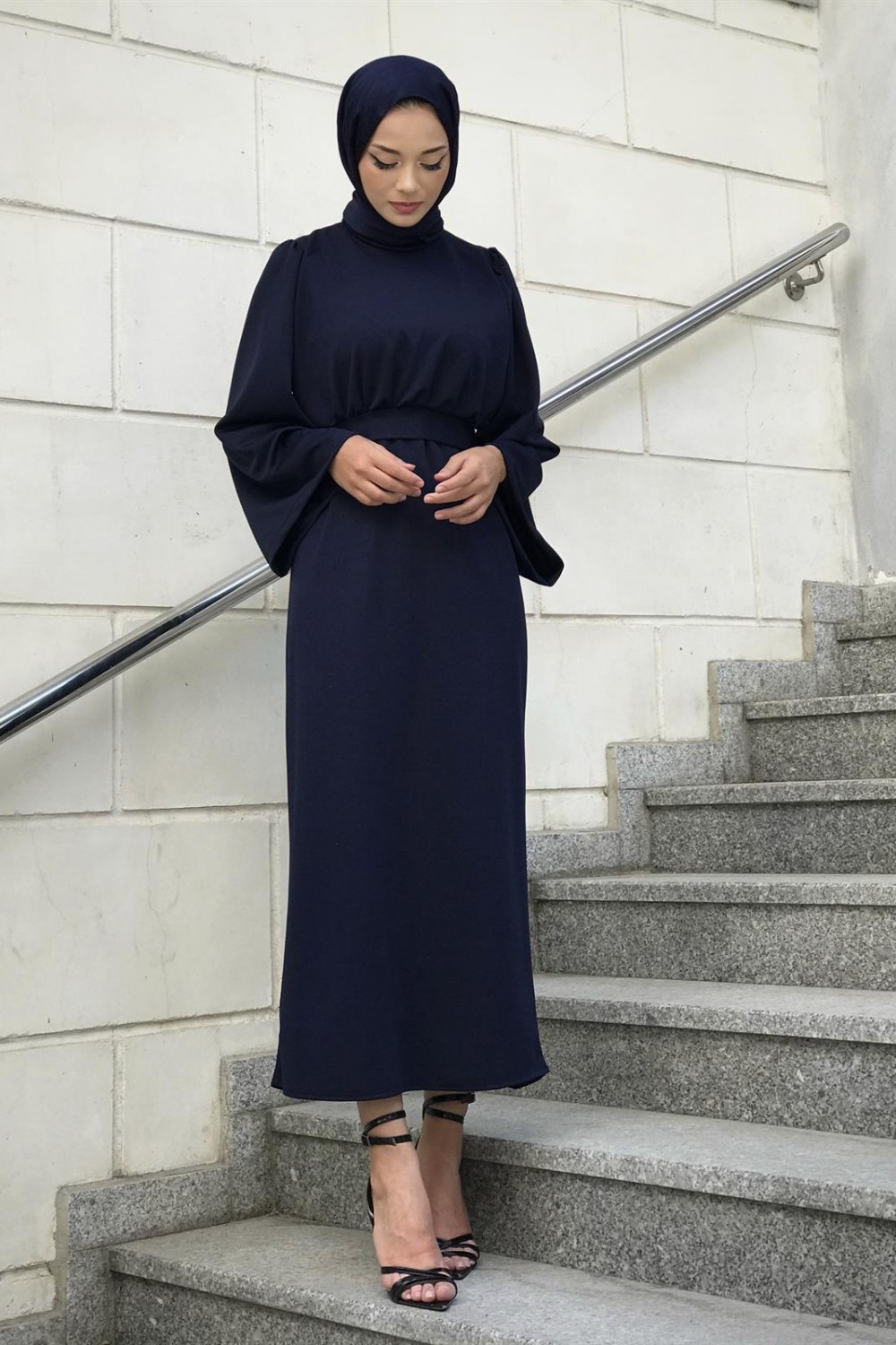 İspanyol Kol Kalem Kesim Elbise Lacivert
