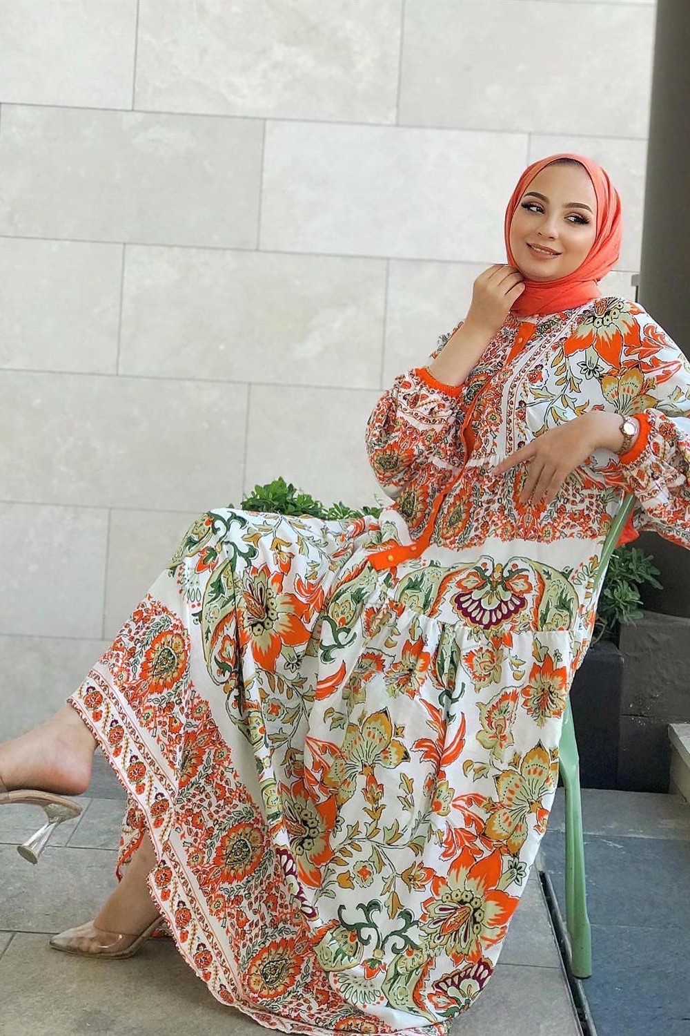 Alaçatı Viskon Elbise Turuncu