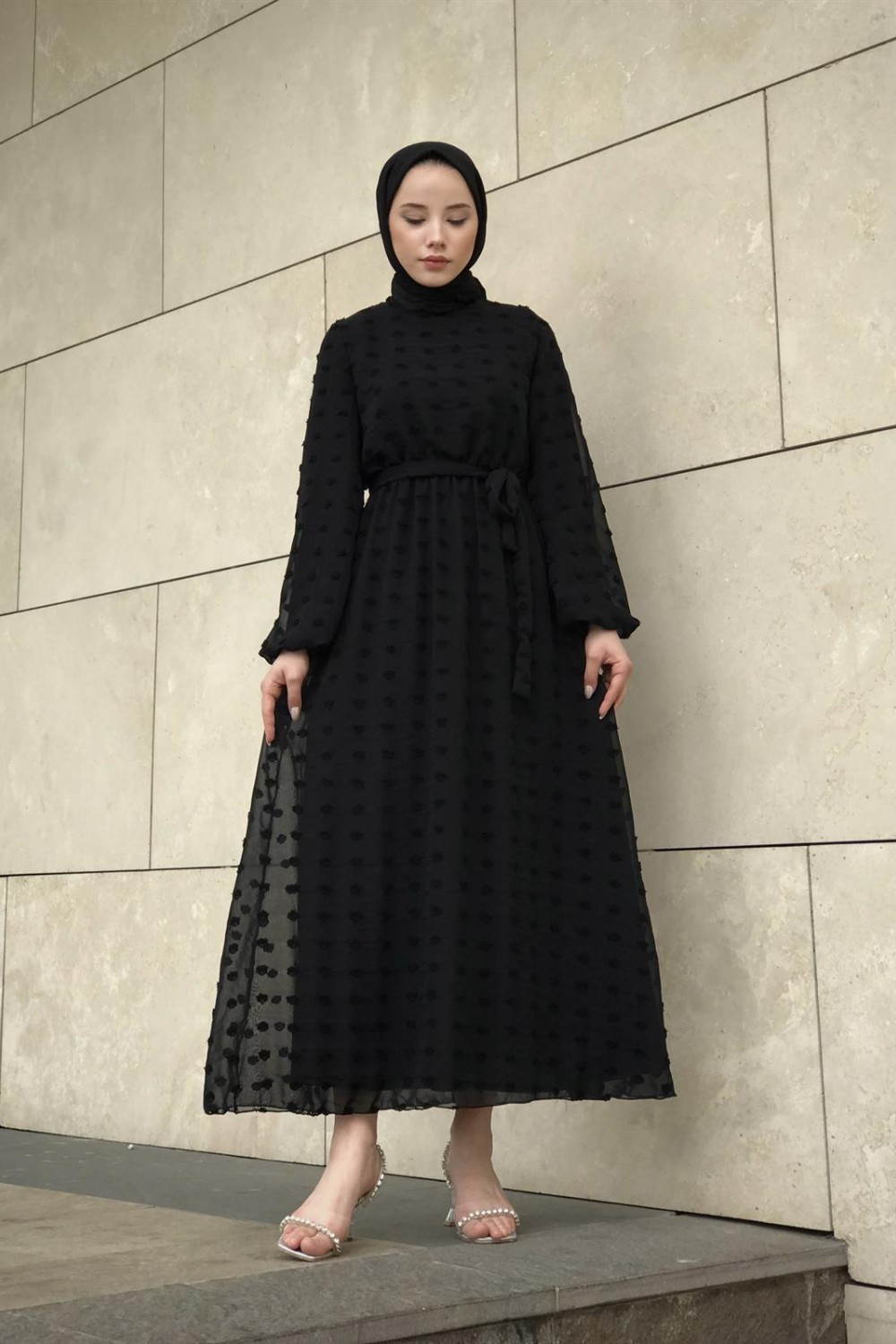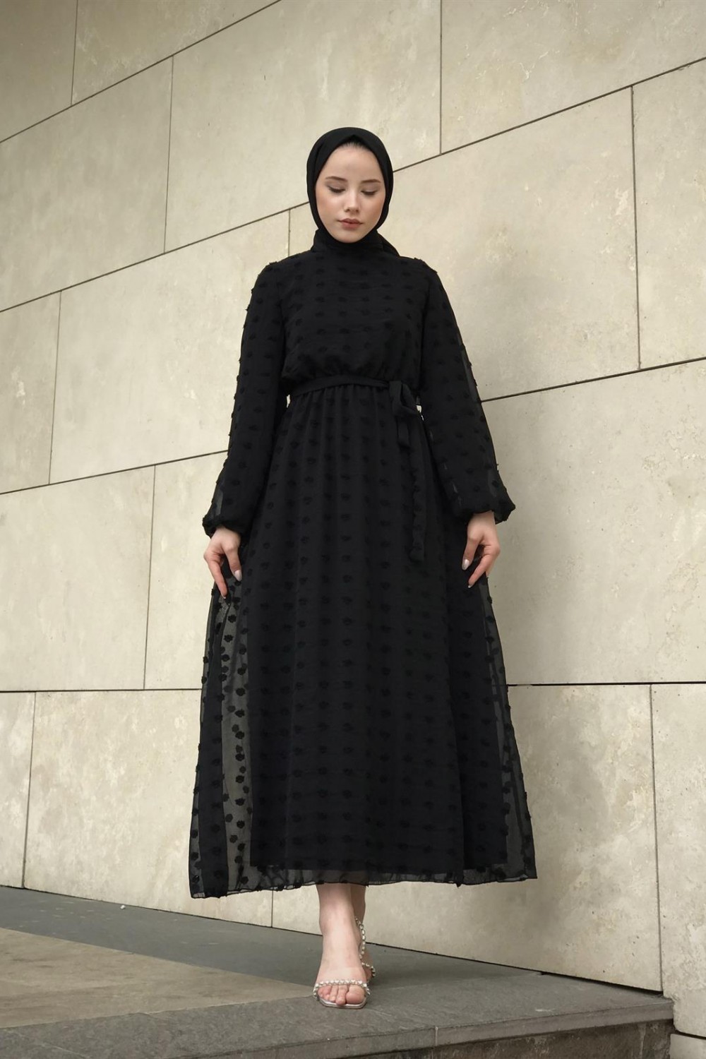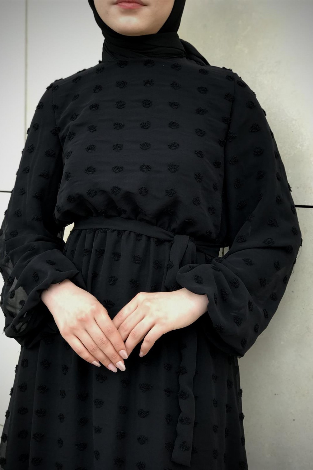 Beli Lastikli Kuşaklı Nova Elbise Siyah