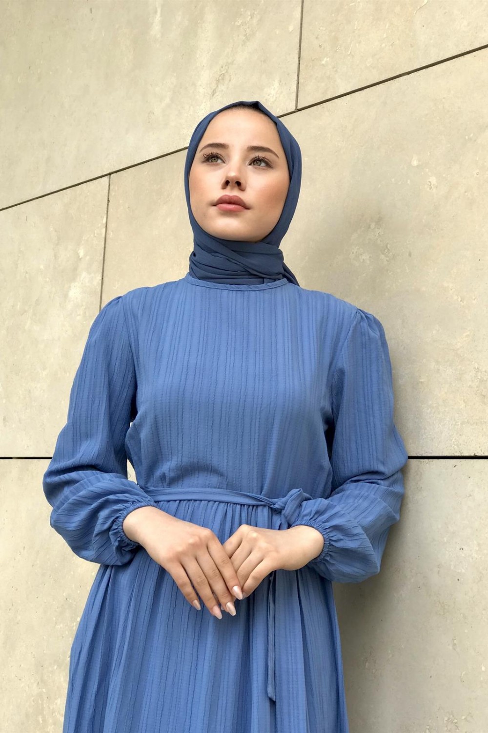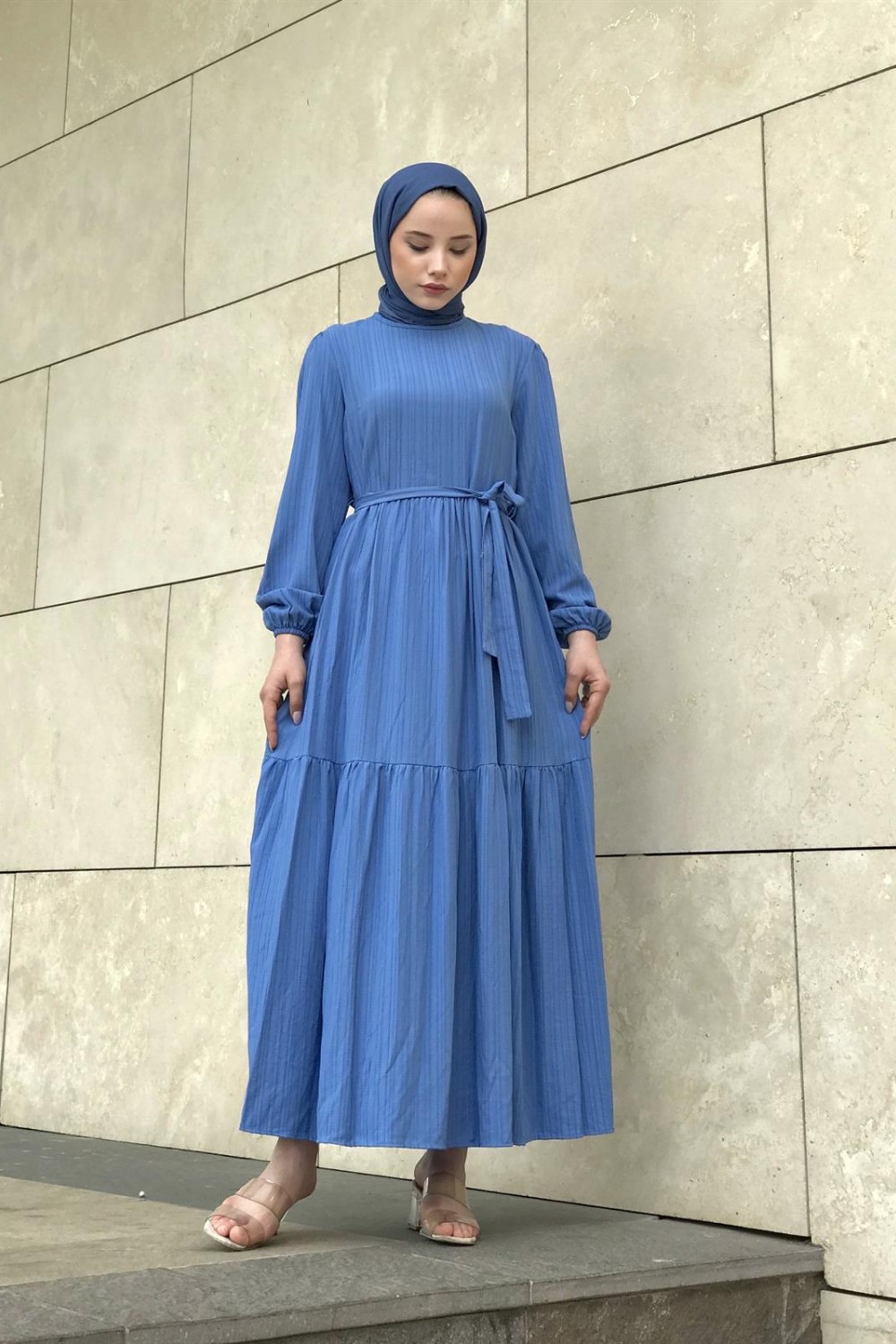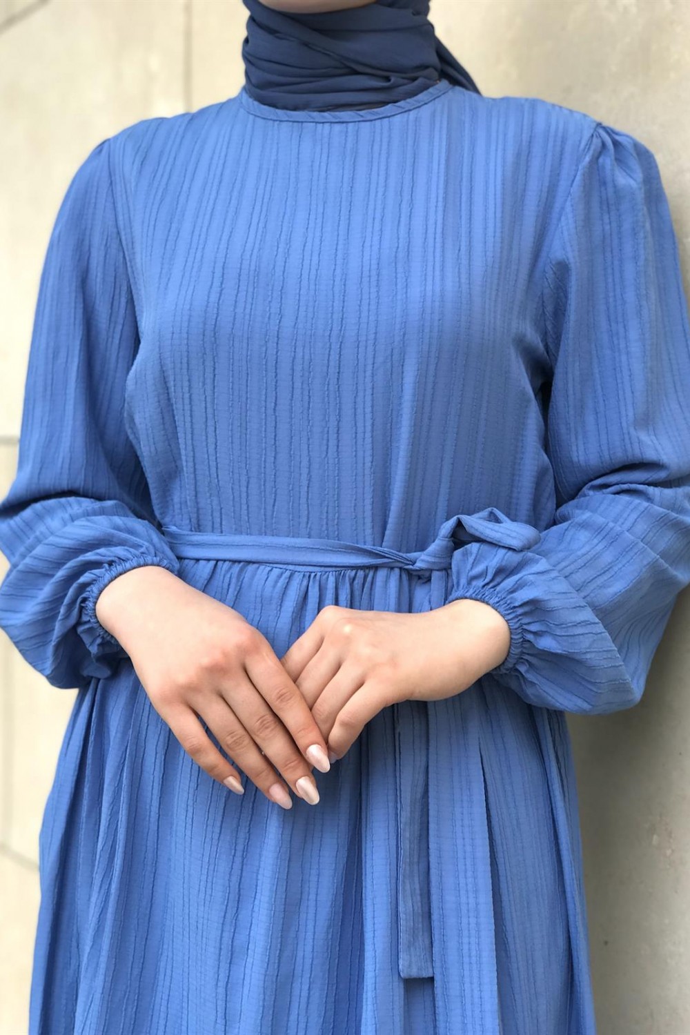 Kendinden Çizgili Maxi Elbise BebeMavisi