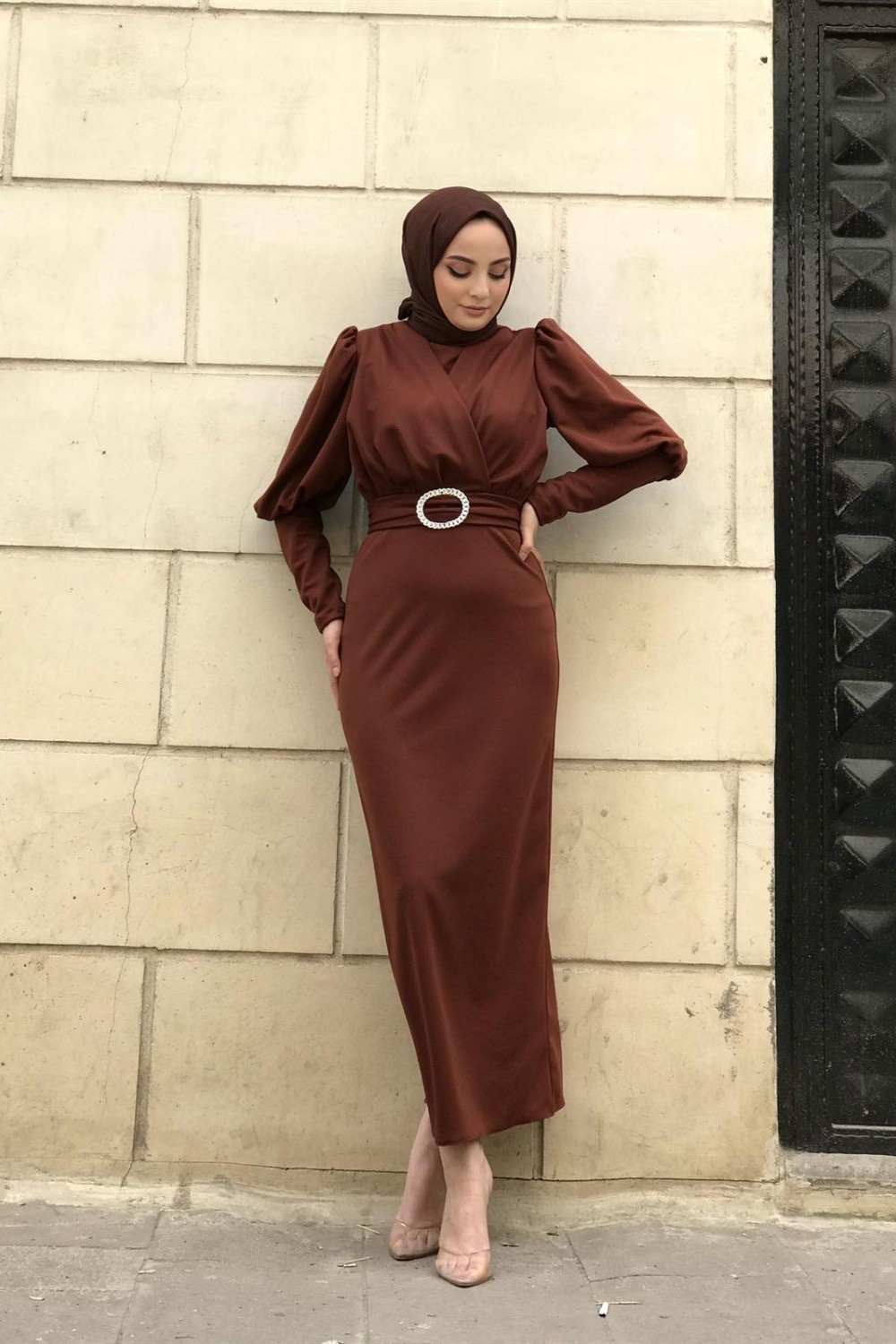 Önü Çapraz Kemerli Elbise Kiremit