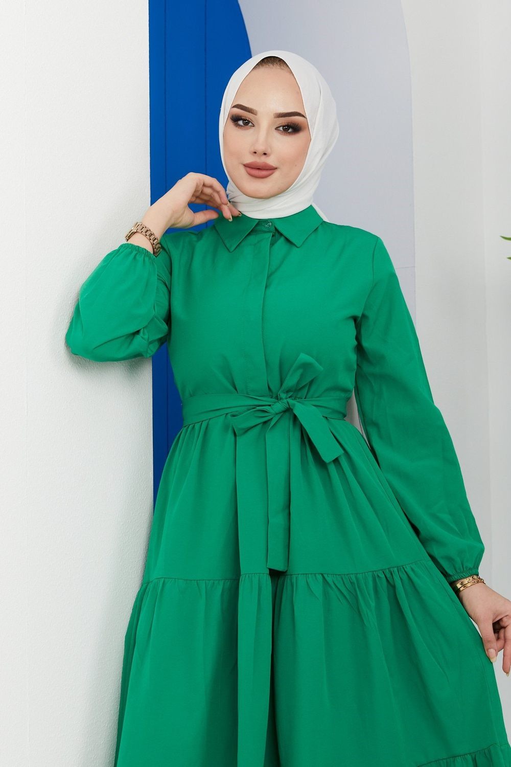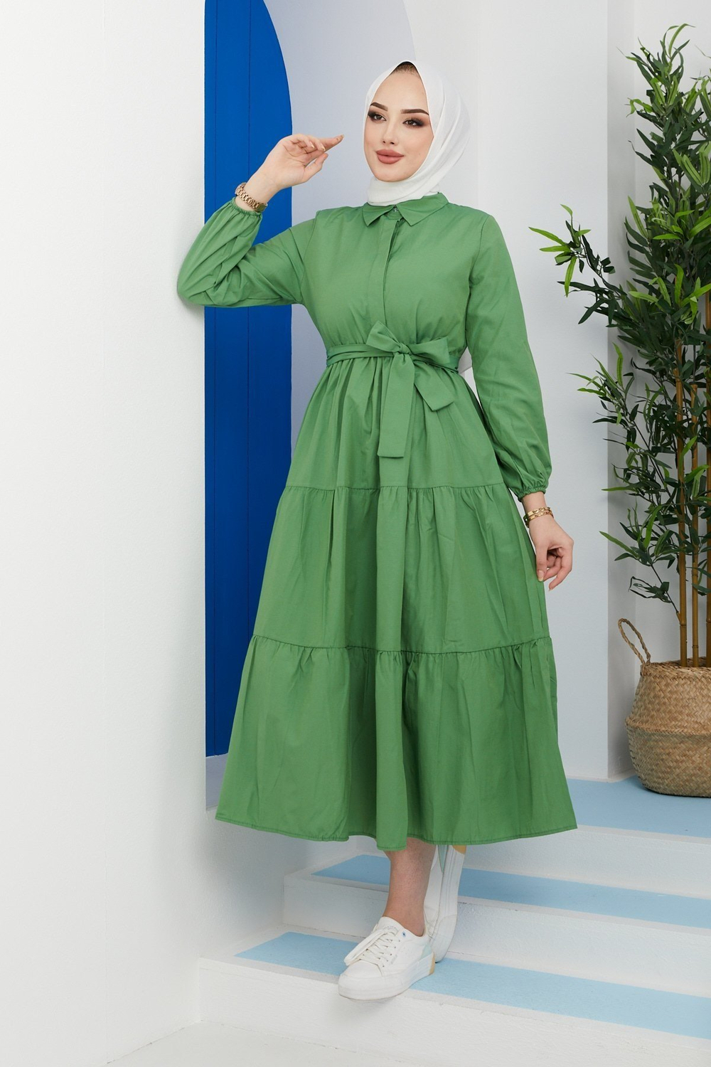 Kat Kat Poplin Gömlek Elbise Yeşil