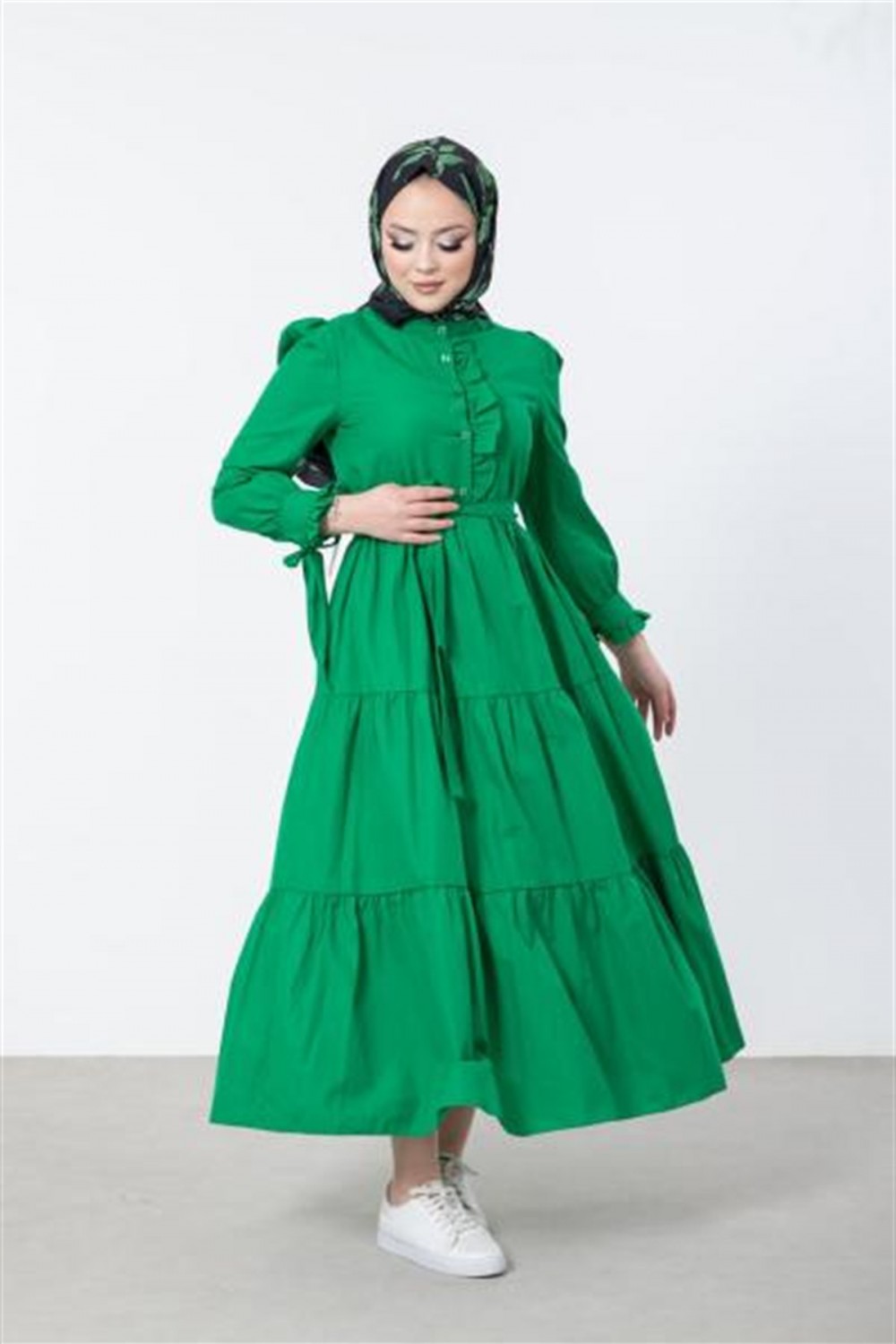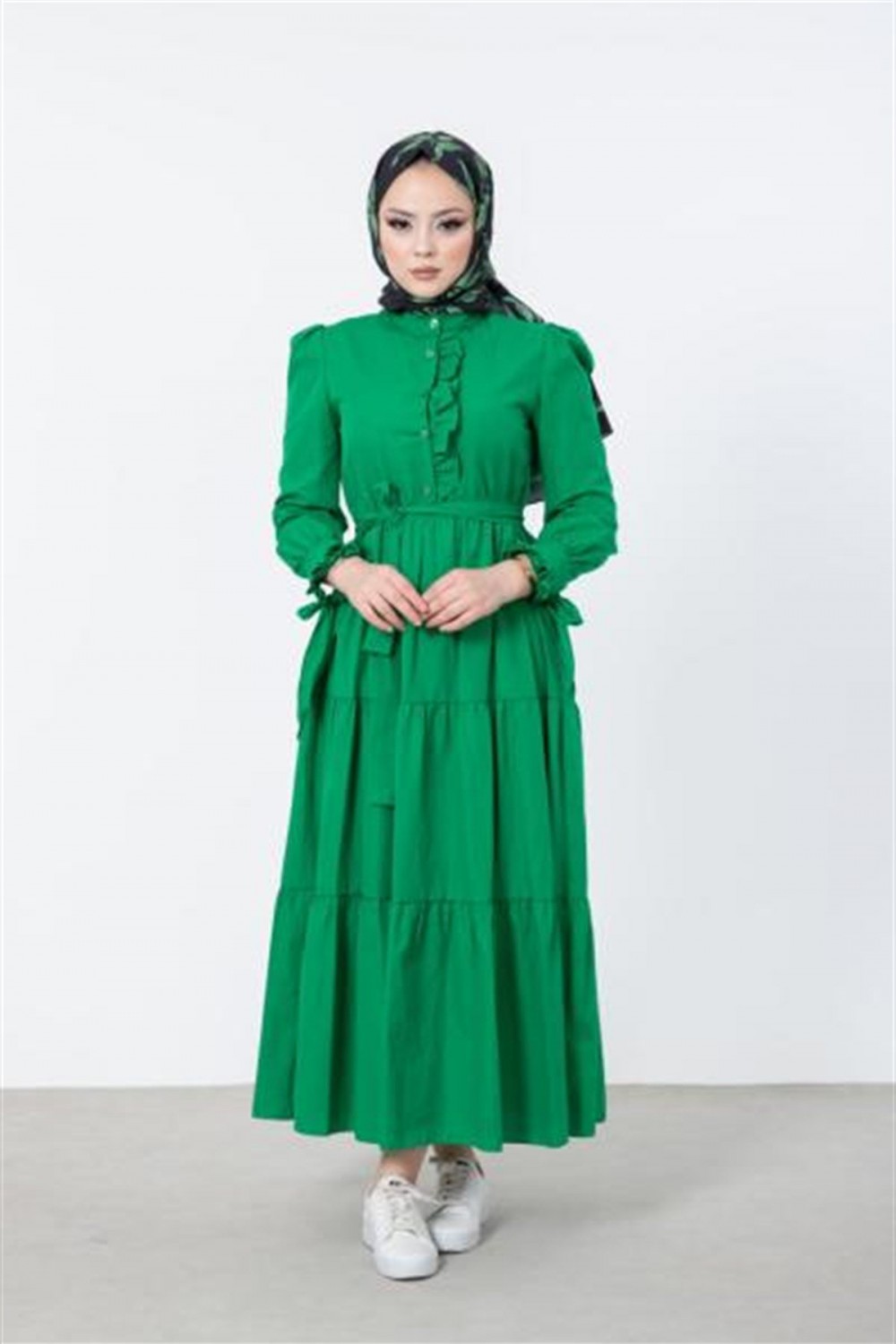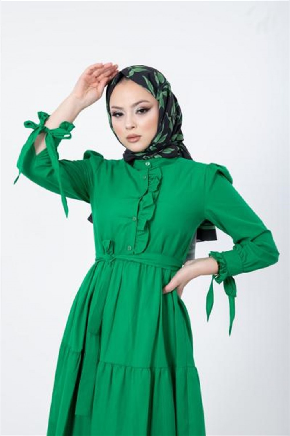 Önü ve Kolu Fırfırlı Elbise Yeşil