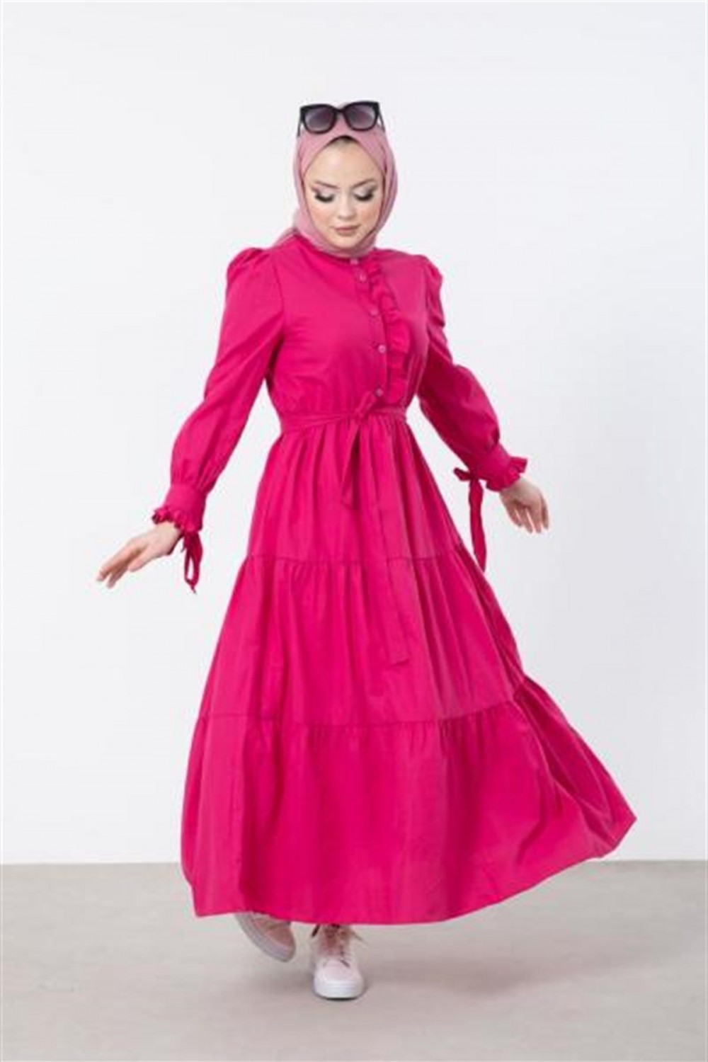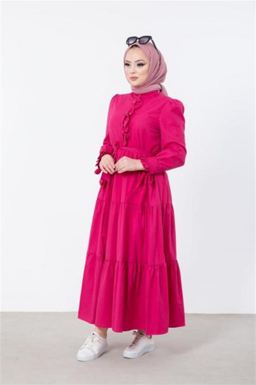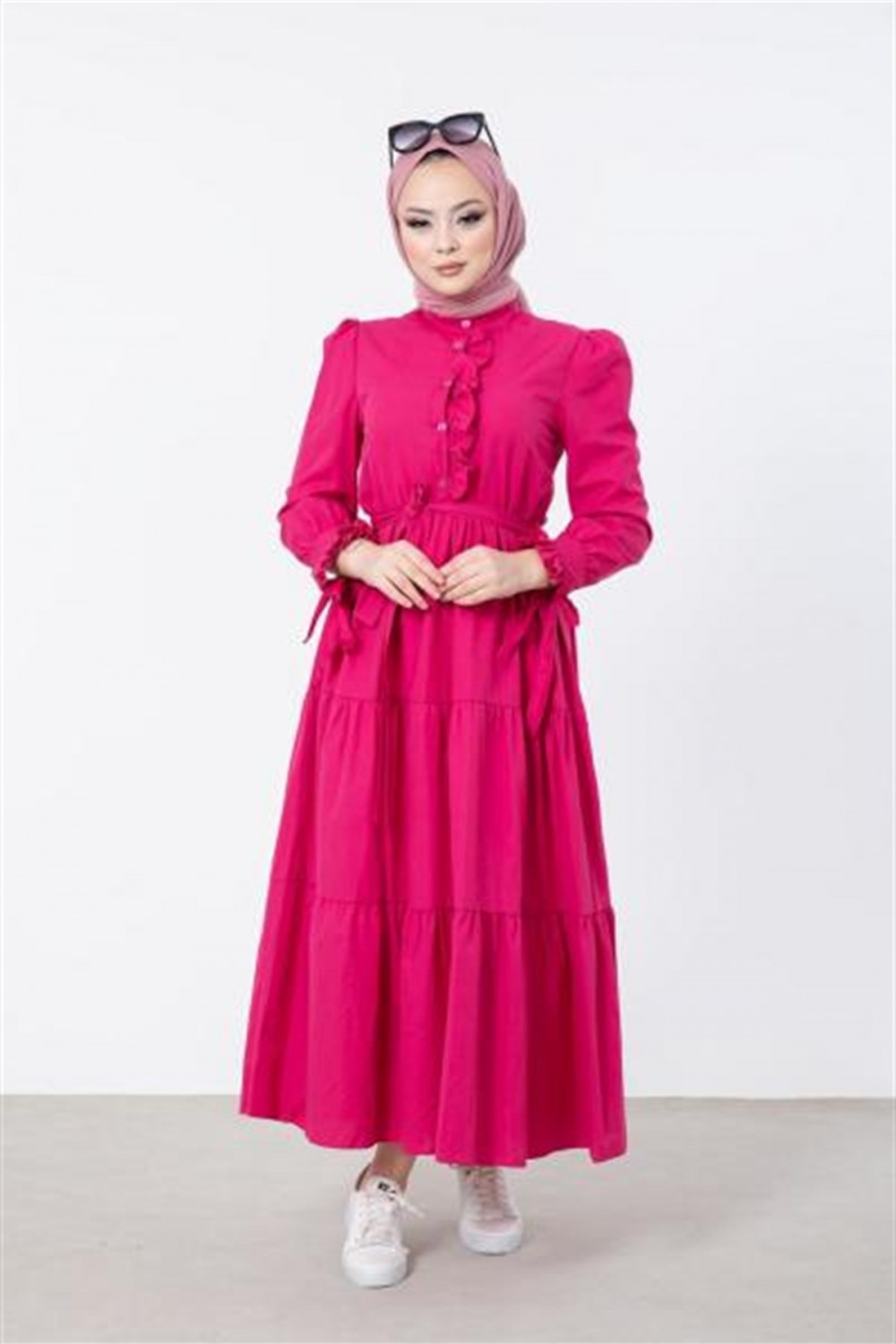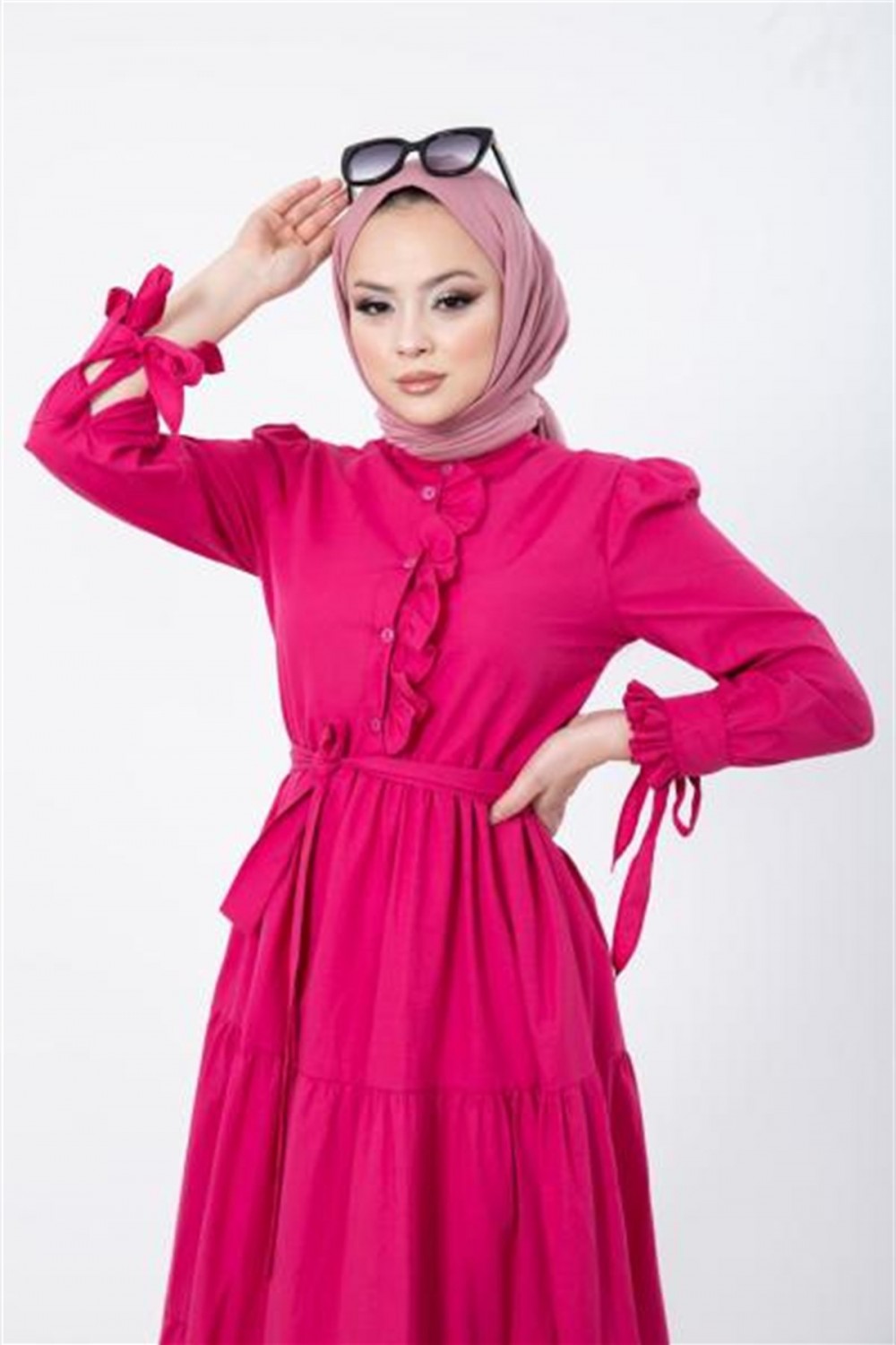 Önü ve Kolu Fırfırlı Elbise Pembe