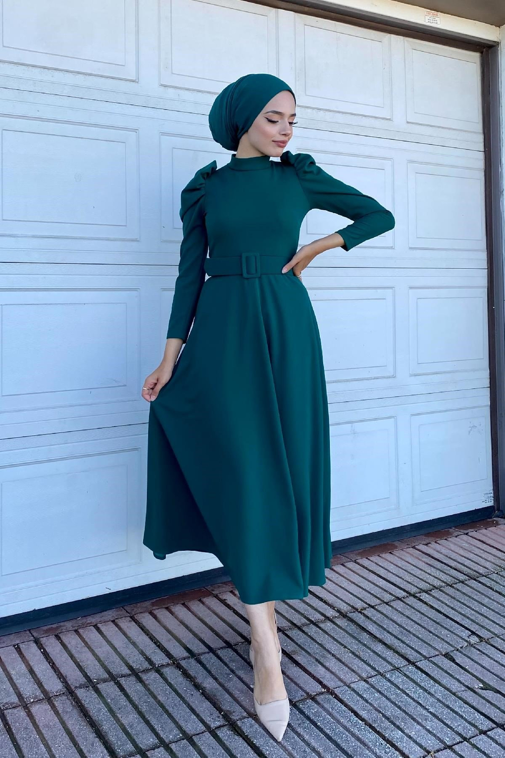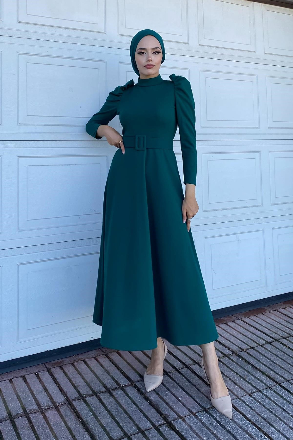 Karpuz Kol Kloş Elbise Yeşil