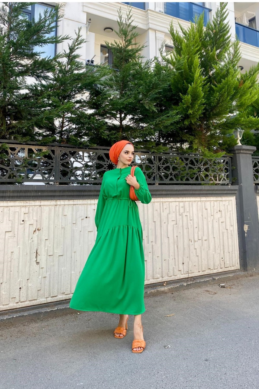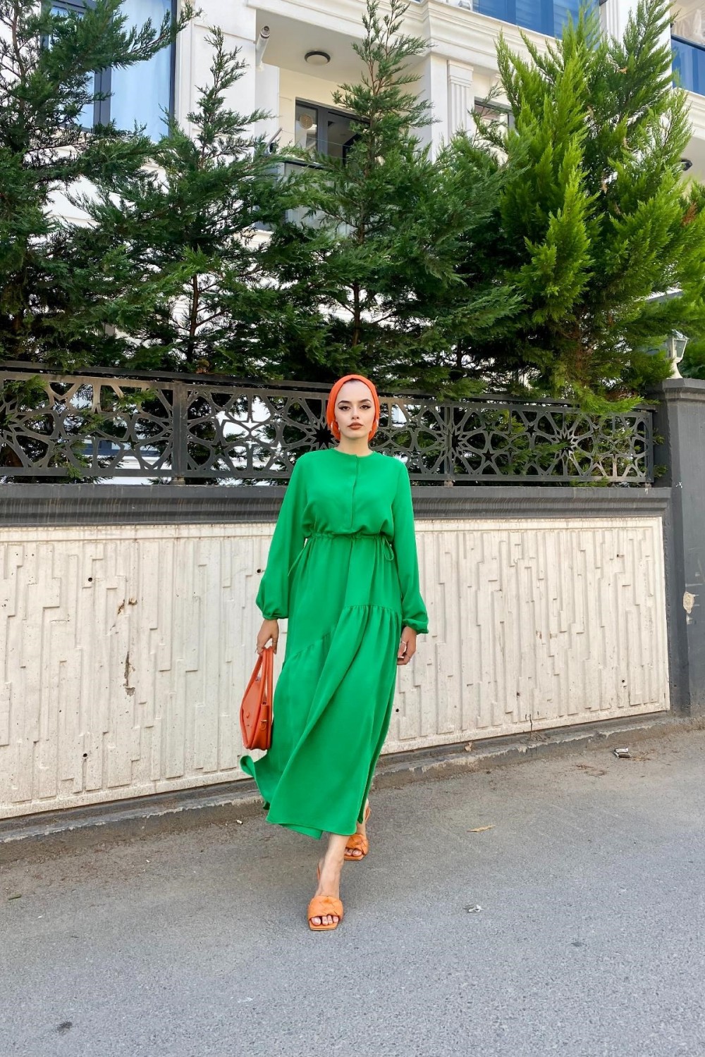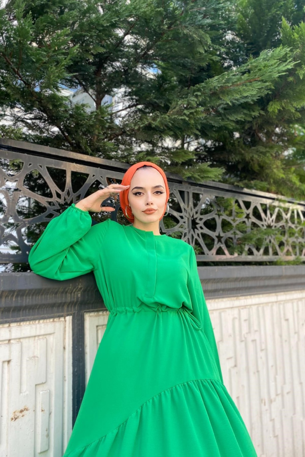 Altı Verev Parçalı Elbise Yeşil