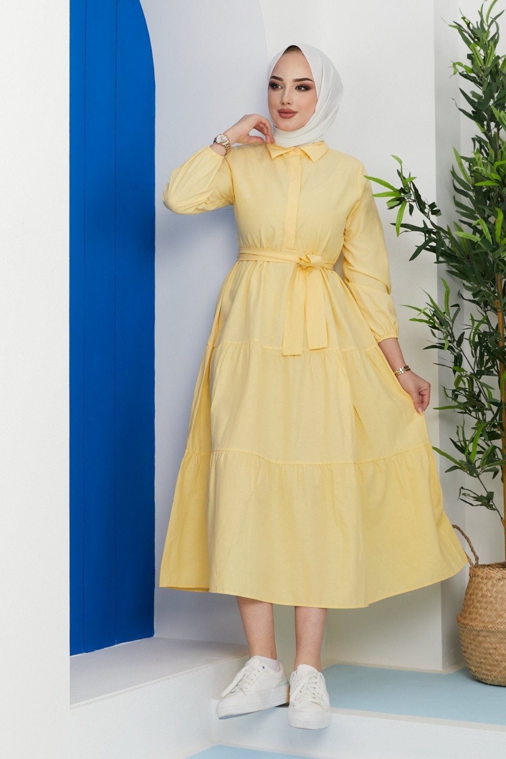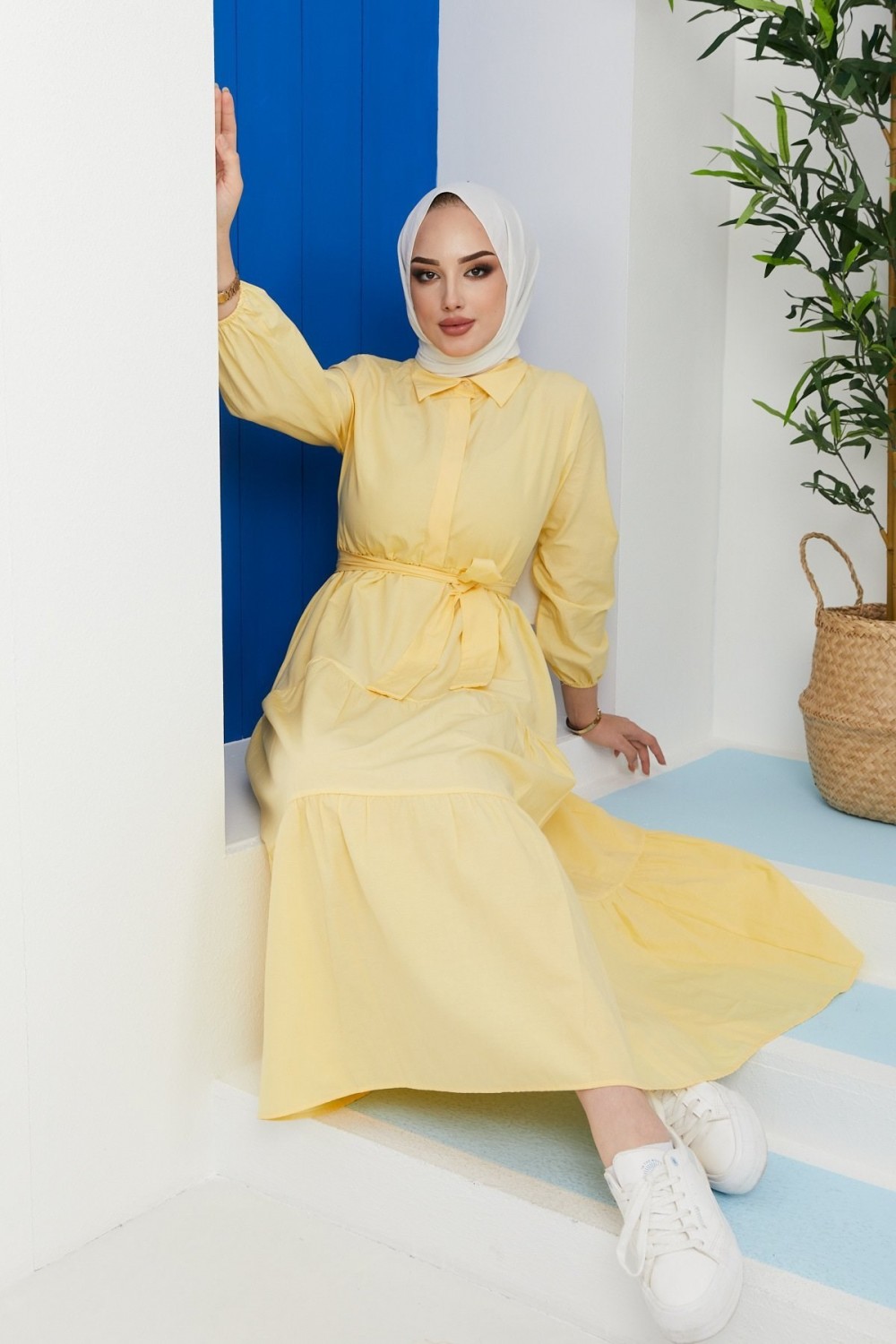 Kat Kat Düğmeli Gömlek Elbise Sarı
