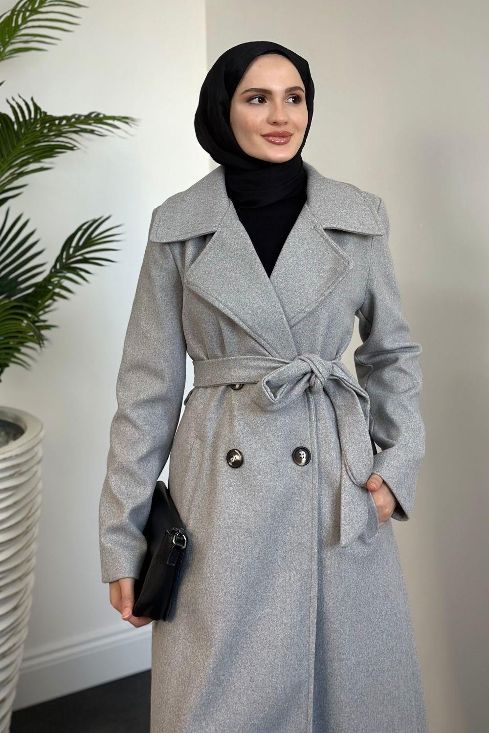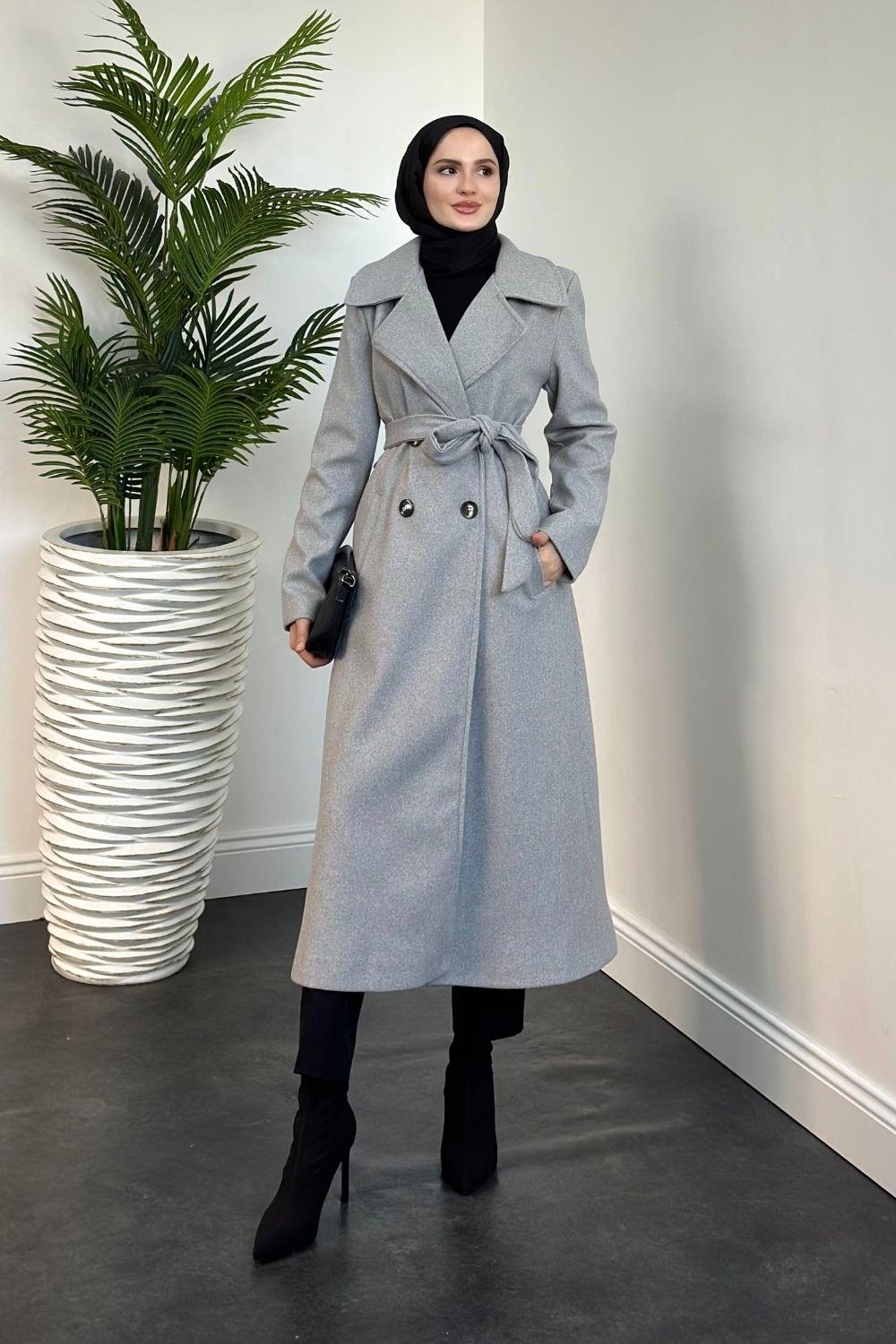Darell Astarlı Düğmeli Kaban Gri