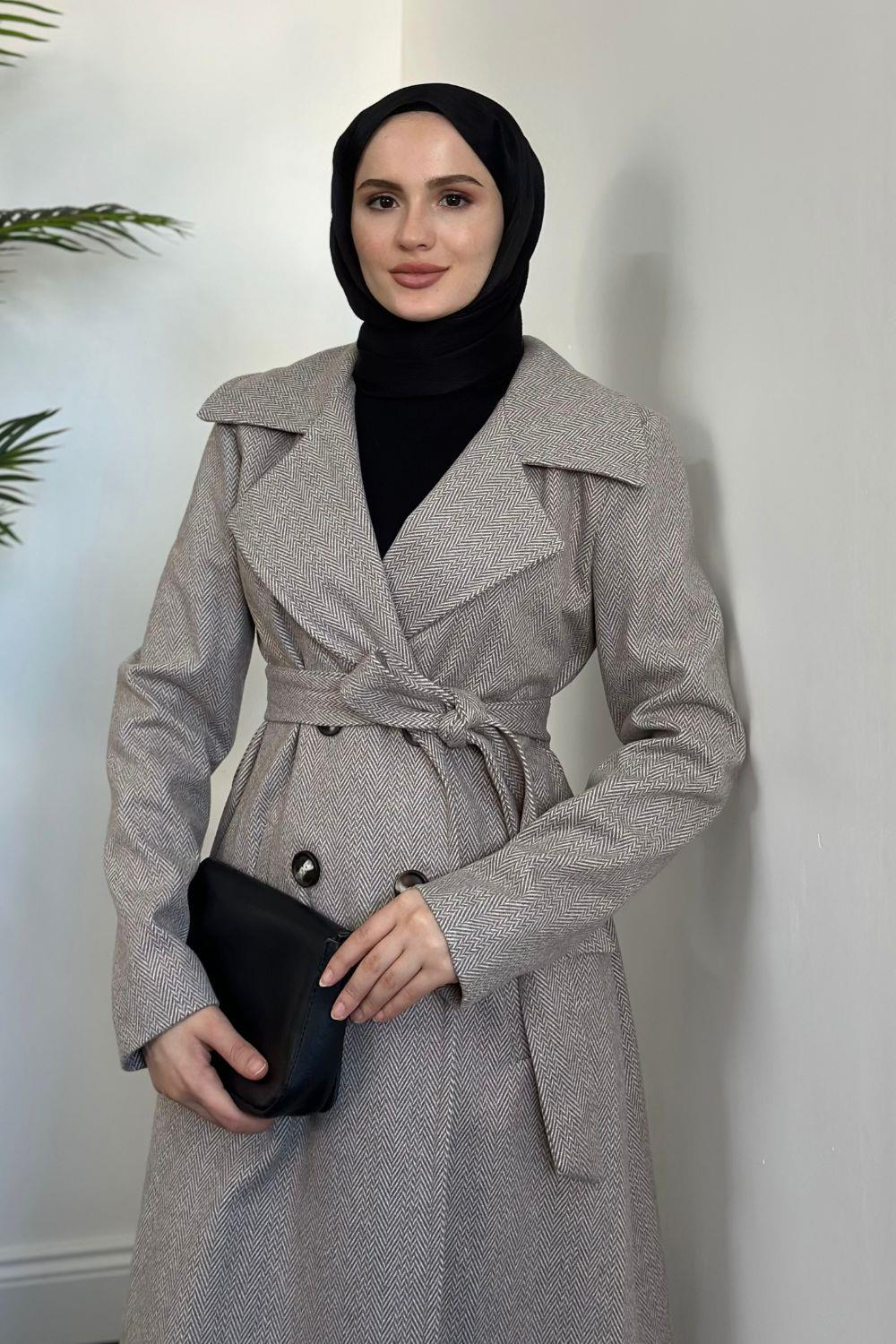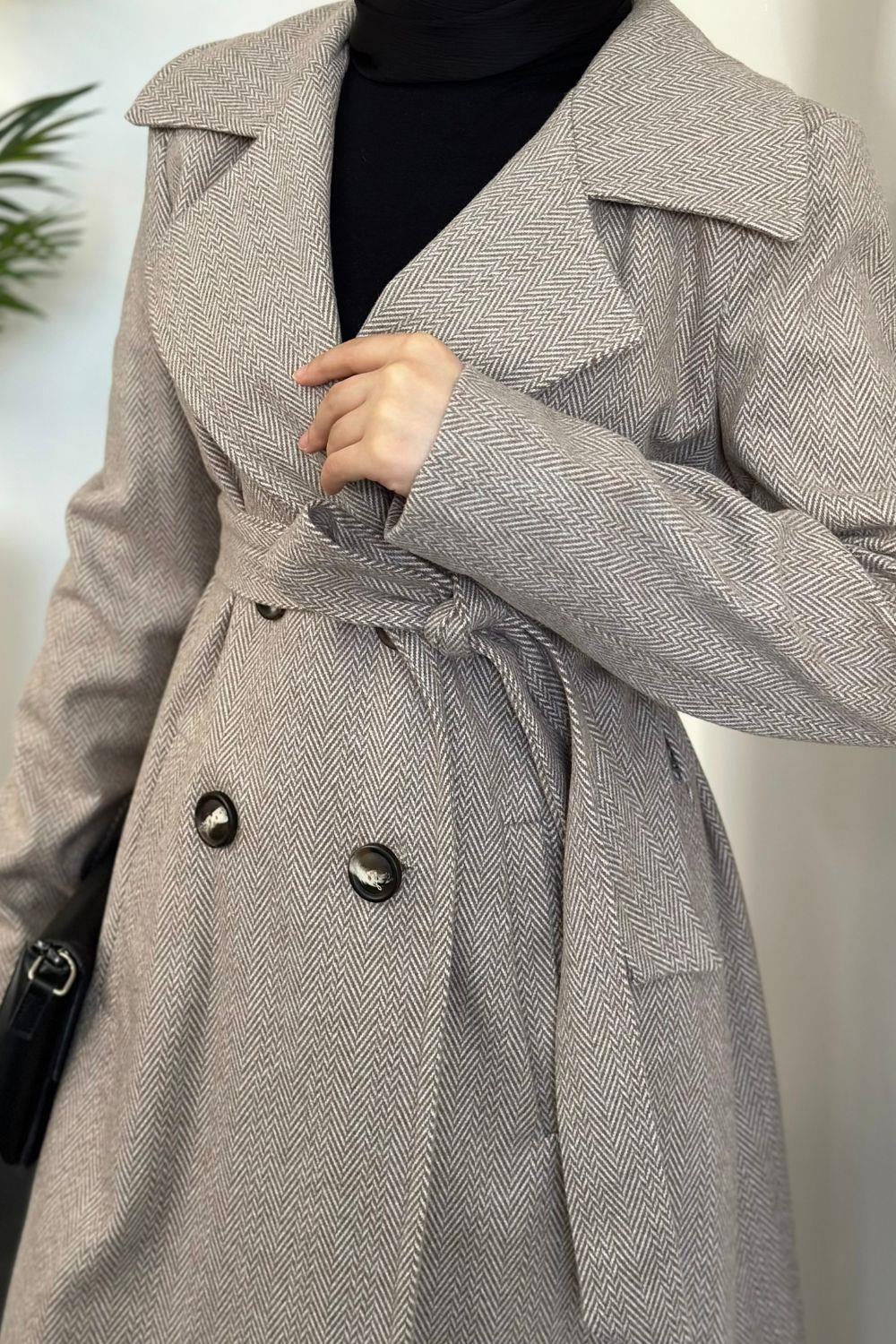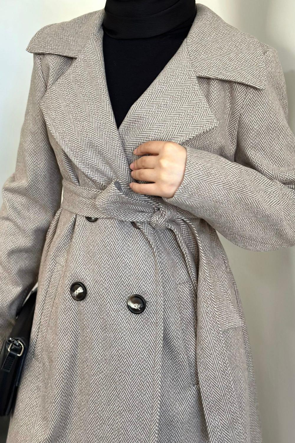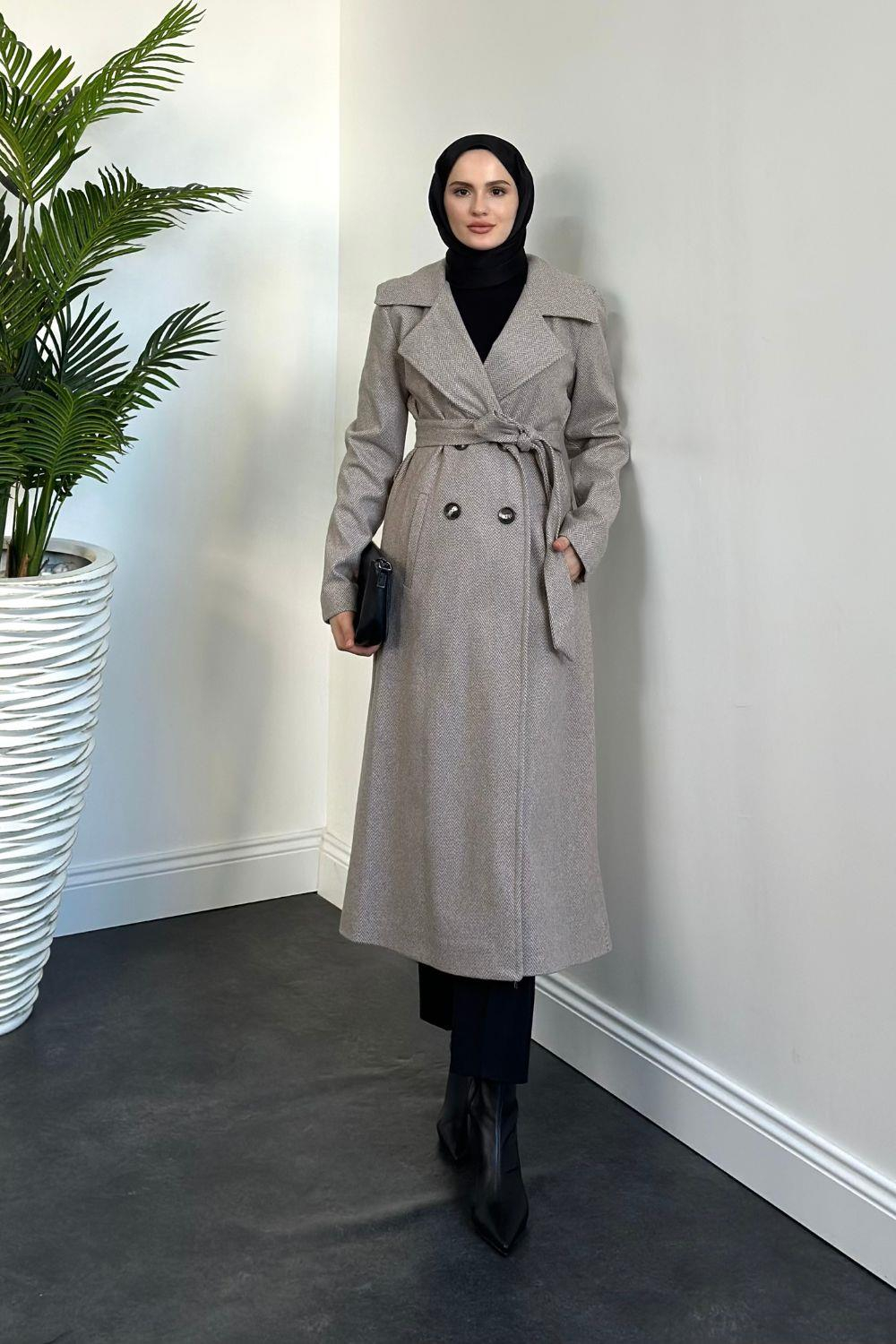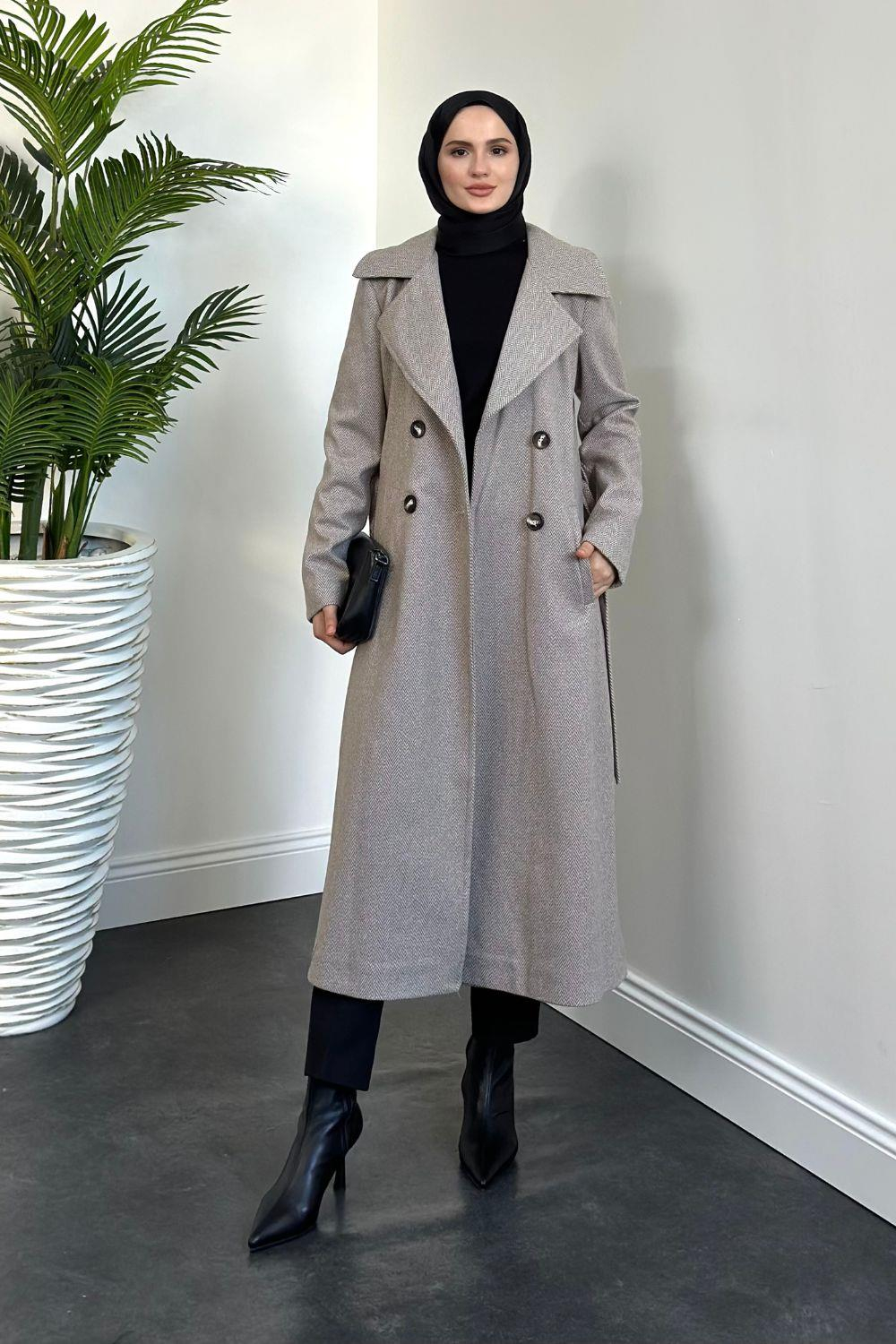 Anjali Düğmeli Astarlı Kaban Kahverengi