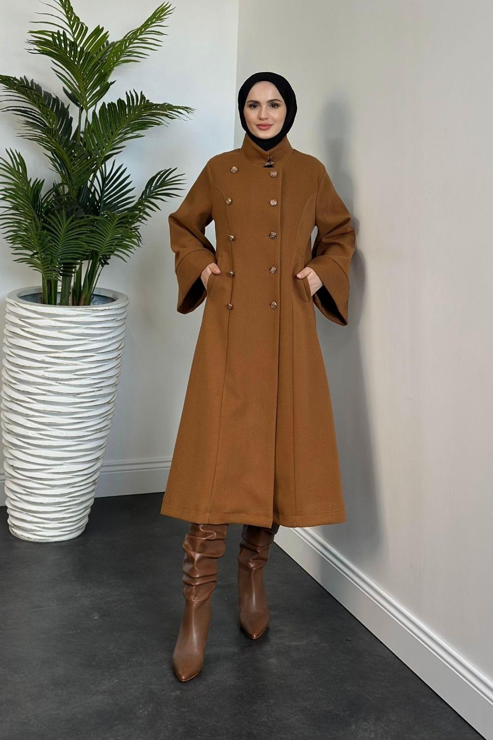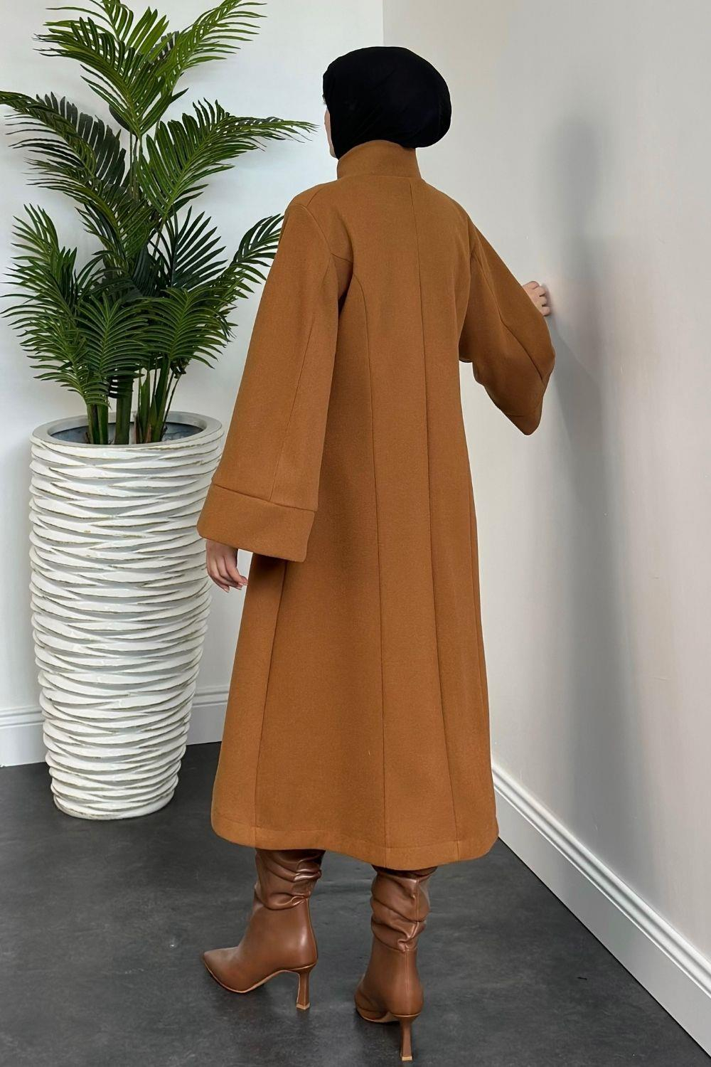 Jeremiah Hakim Yaka Düğmeli Astarlı Kaban Taba