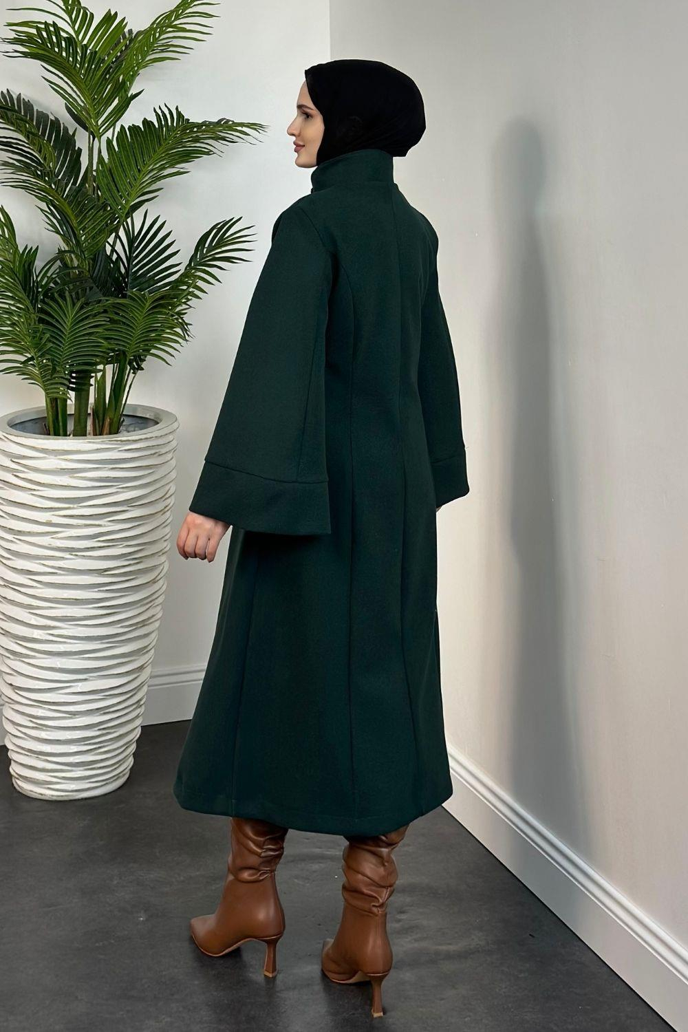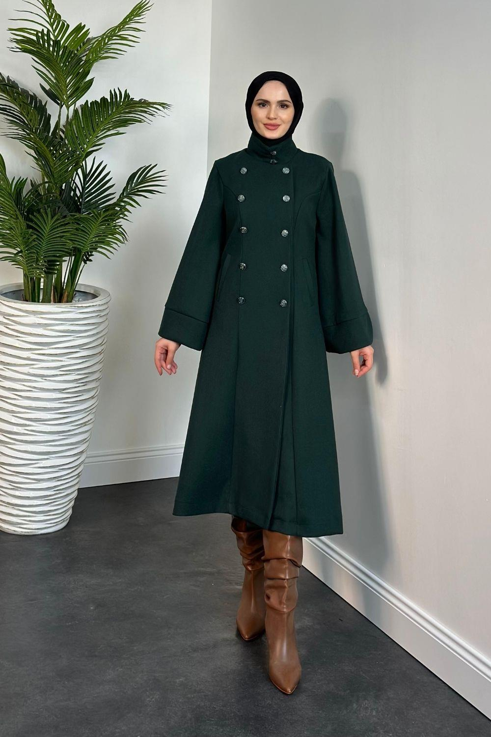 Jeremiah Hakim Yaka Düğmeli Astarlı Kaban Zümrüt