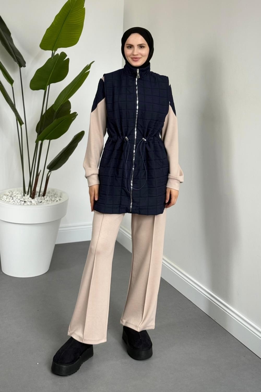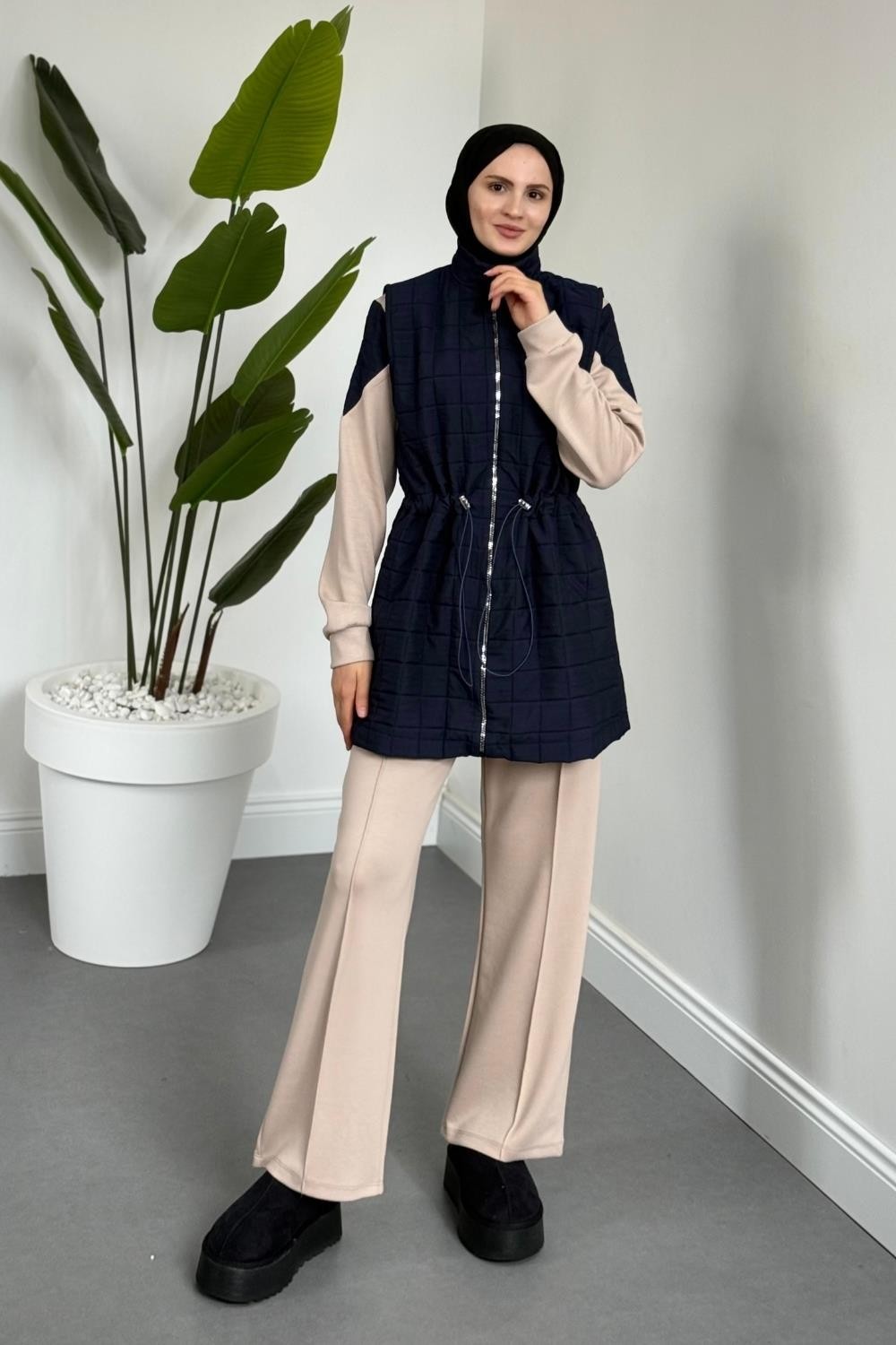 Armoni Kapitone Yelekli 3'lü Takım Lacivert