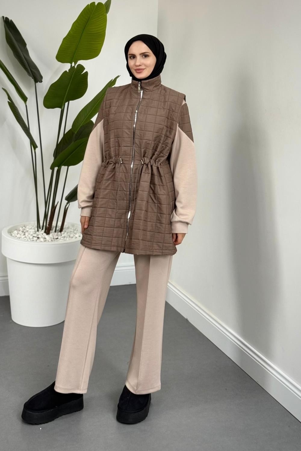 Armoni Kapitone Yelekli 3'lü Takım Vizon
