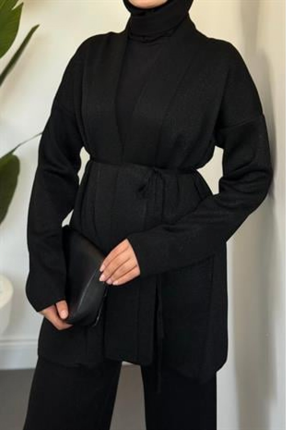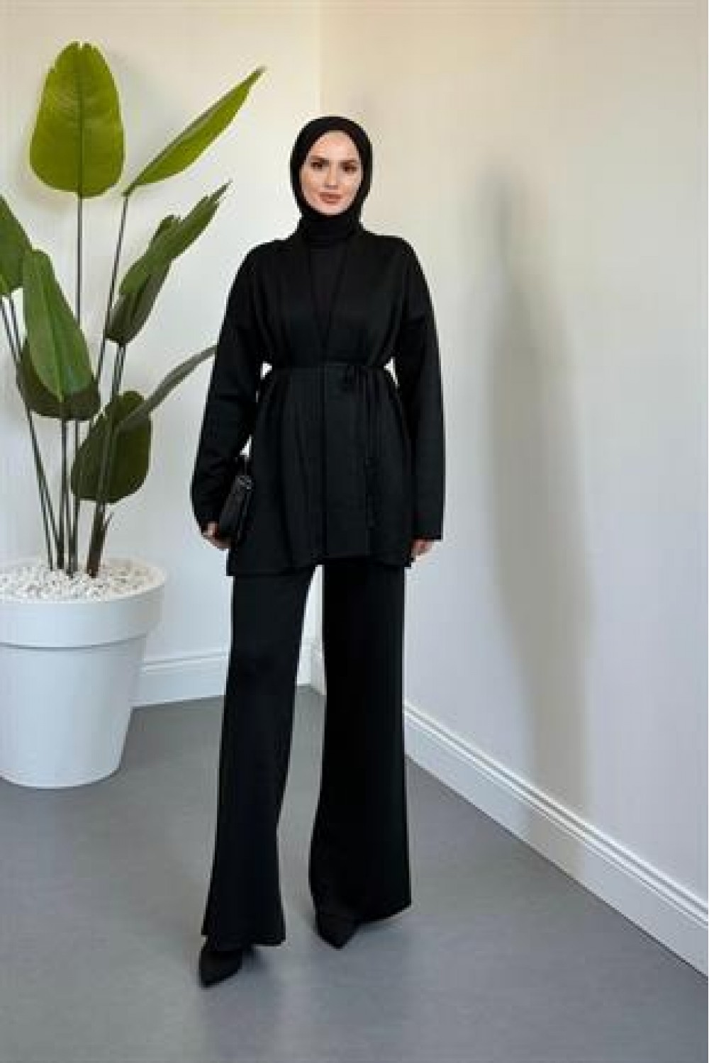 İnfinito Simli Kuşaklı Triko Takım Siyah