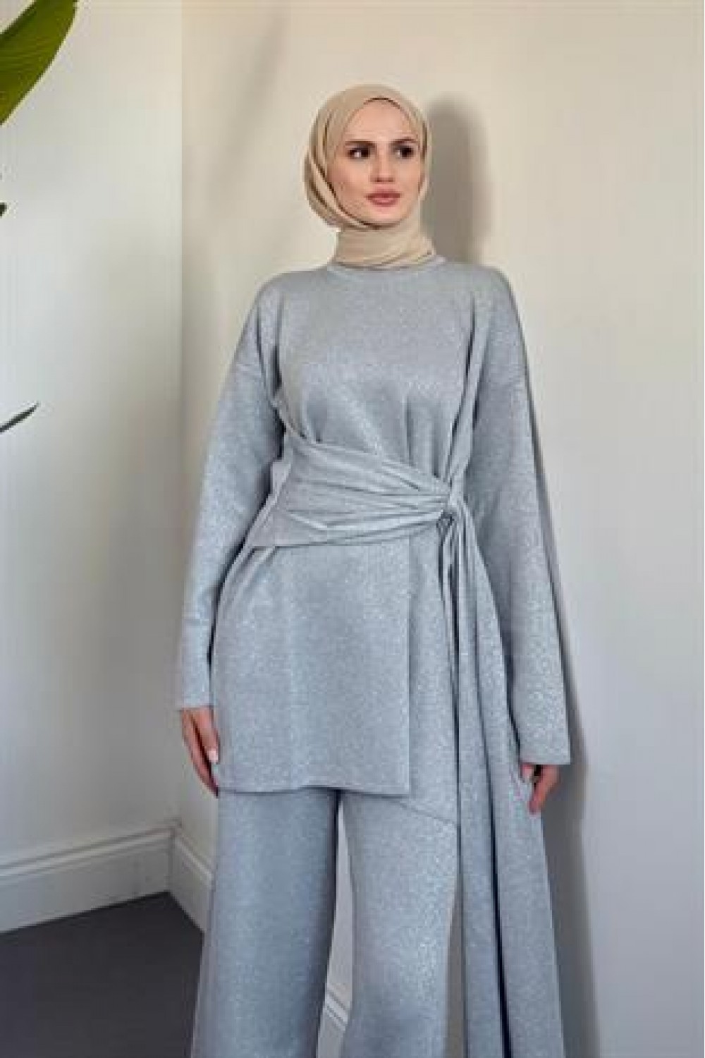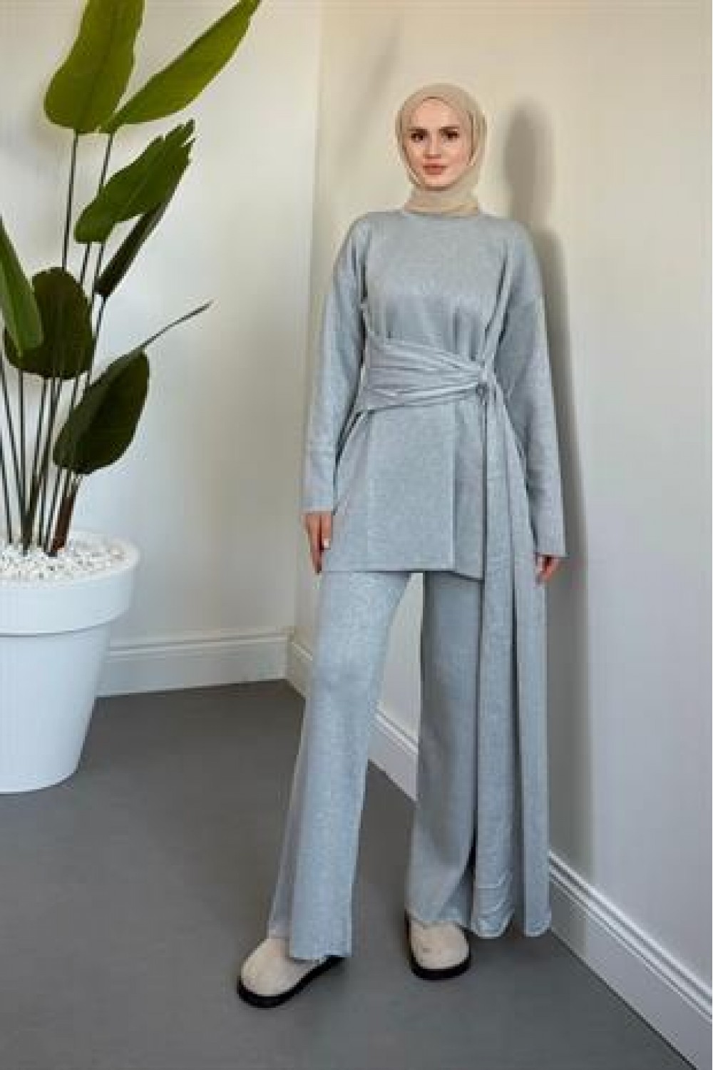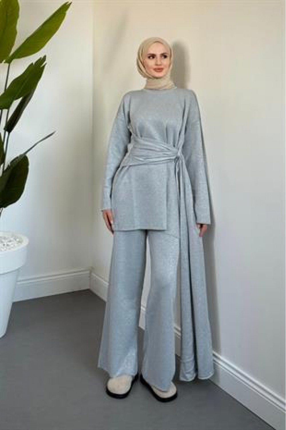 Brillante Yandan Pelerinli Takım Gri