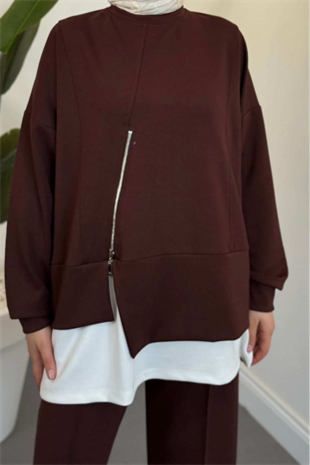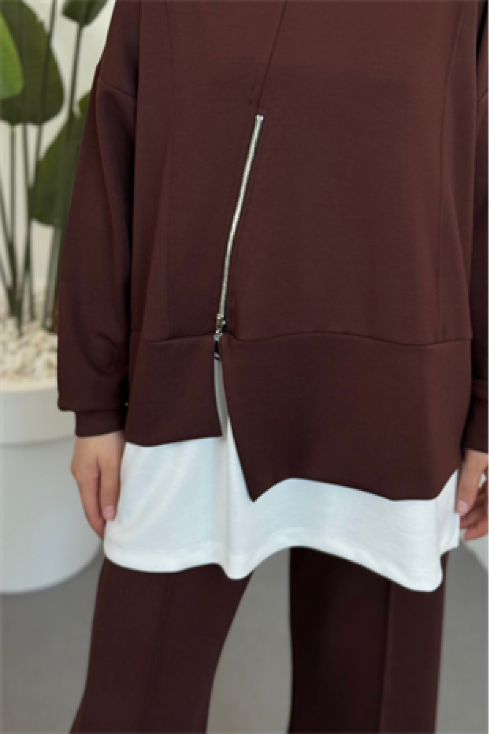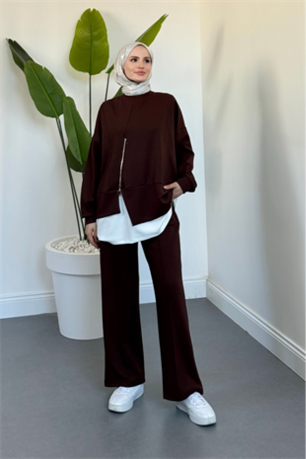 Skylar Alt Kısmı Fermuarlı İçlikli Takım Kahverengi