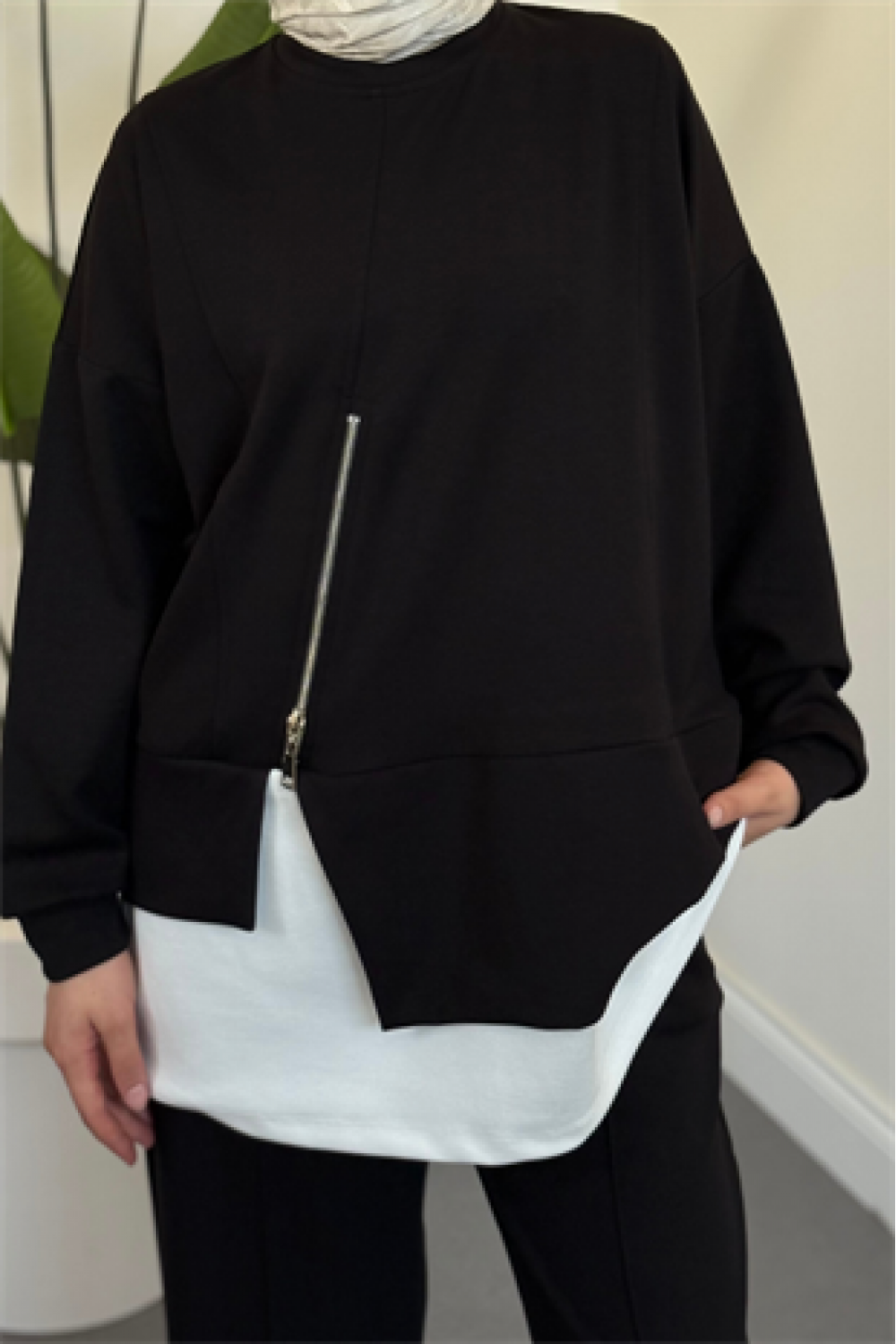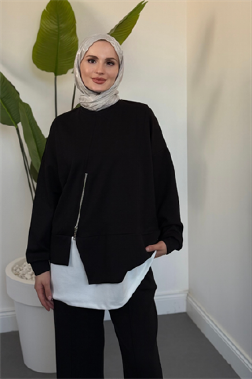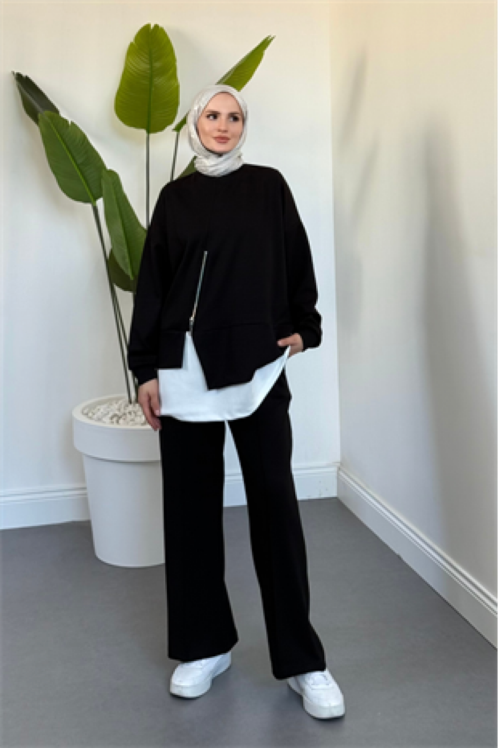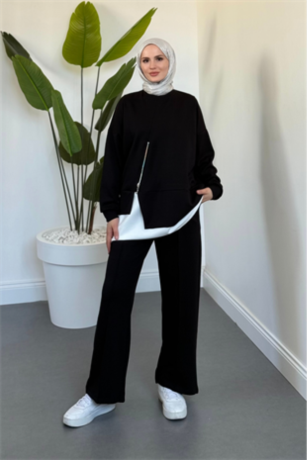 Skylar Alt Kısmı Fermuarlı İçlikli Takım Siyah